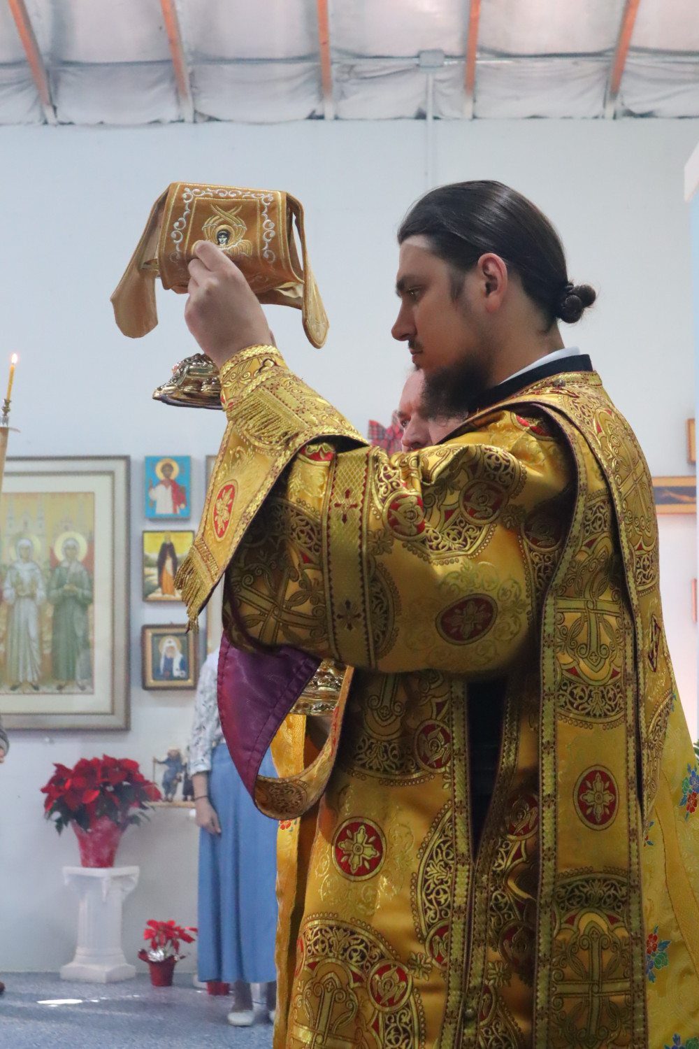 Воскресное утро началось с пения акафиста Почаевской иконе Божией Матери, которое совершил отец Аркадий.