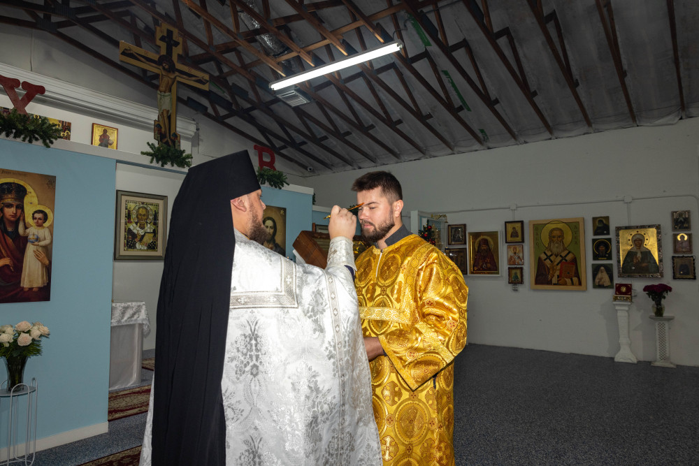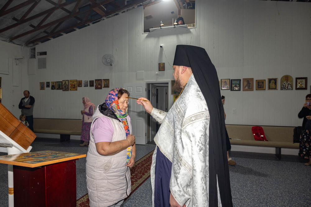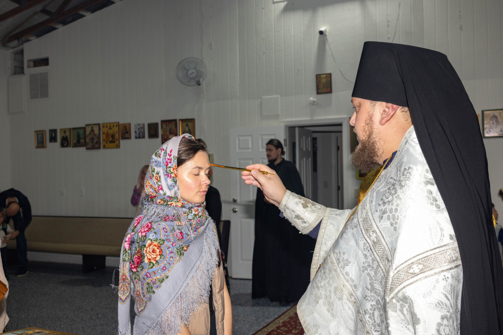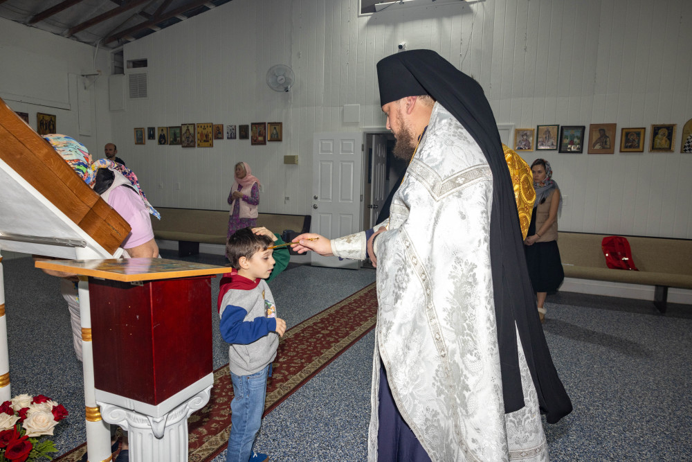 Божественную литургию совершили наместник монастыря архимандрит Стефан (Хильчук), иеродиакон Паисий (Алексеевец) и диакон Александр Хартонюк. На клиросе пел хор под управлением Валерии Суровой. Традиционно апостольское чтение было прочитано на славянском и английском языках. Евангельское чтение прочитал отец Паисий.