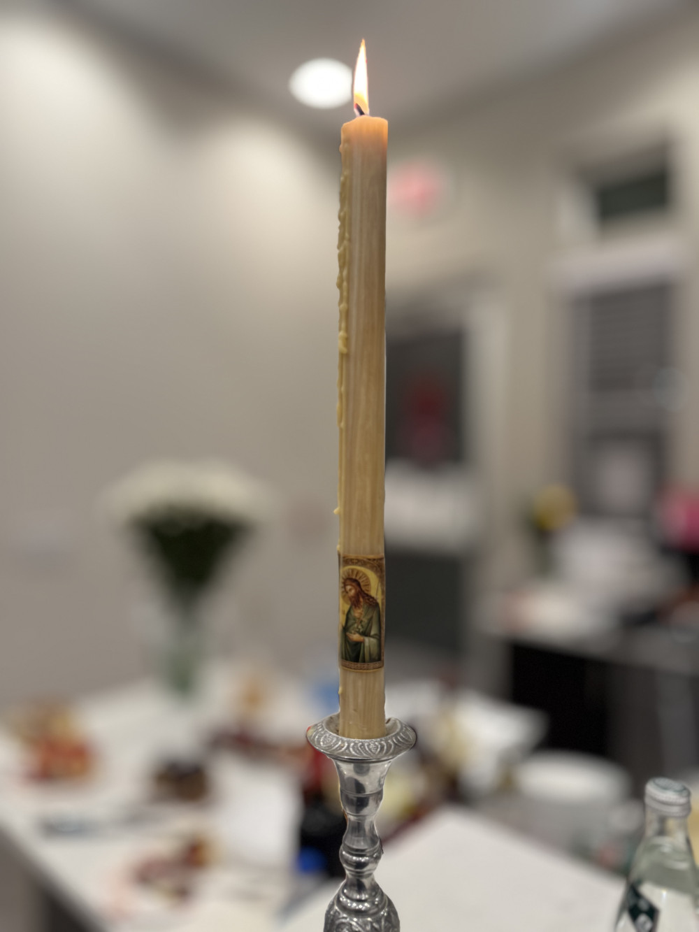 Накрывается трапеза, во время которой хозяева обычно не садятся за стол, а «служат ближнему», то есть стараются подать и принести всё необходимое для трапезы. Во время трапезы обязательно горит большая свеча.