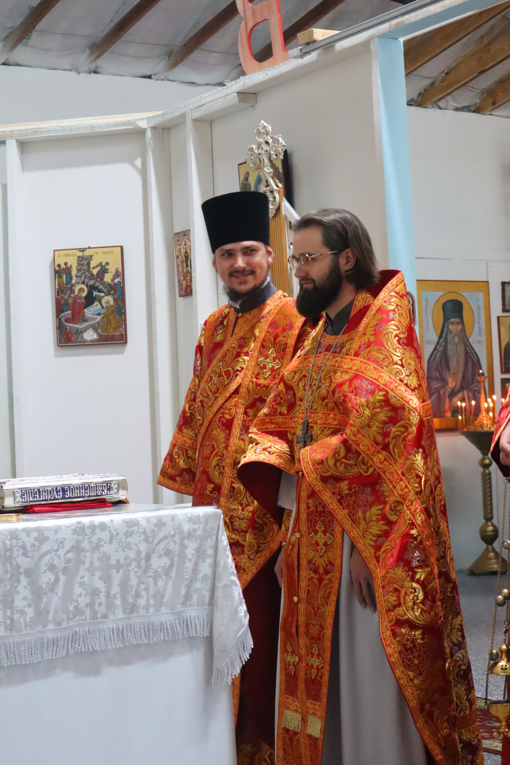 После завершения Литургии гости и прихожане посетили трапезную, где всех ожидала щедрая братская трапеза, а особенно — праздничные торты со свечами для именинника.