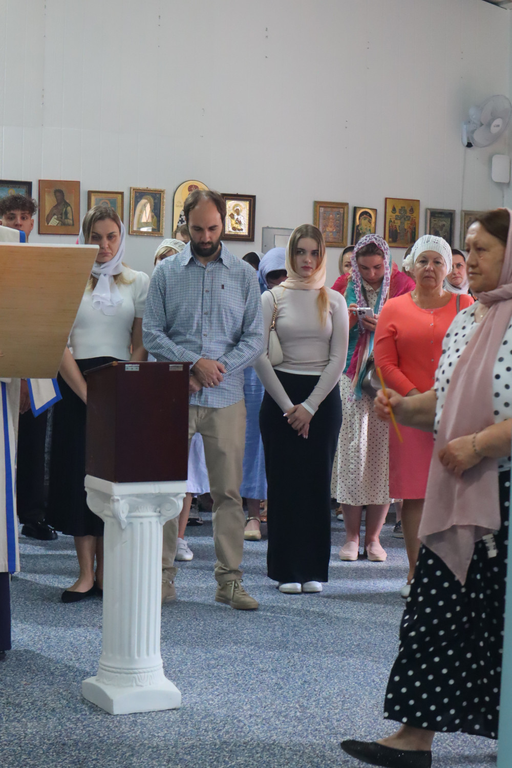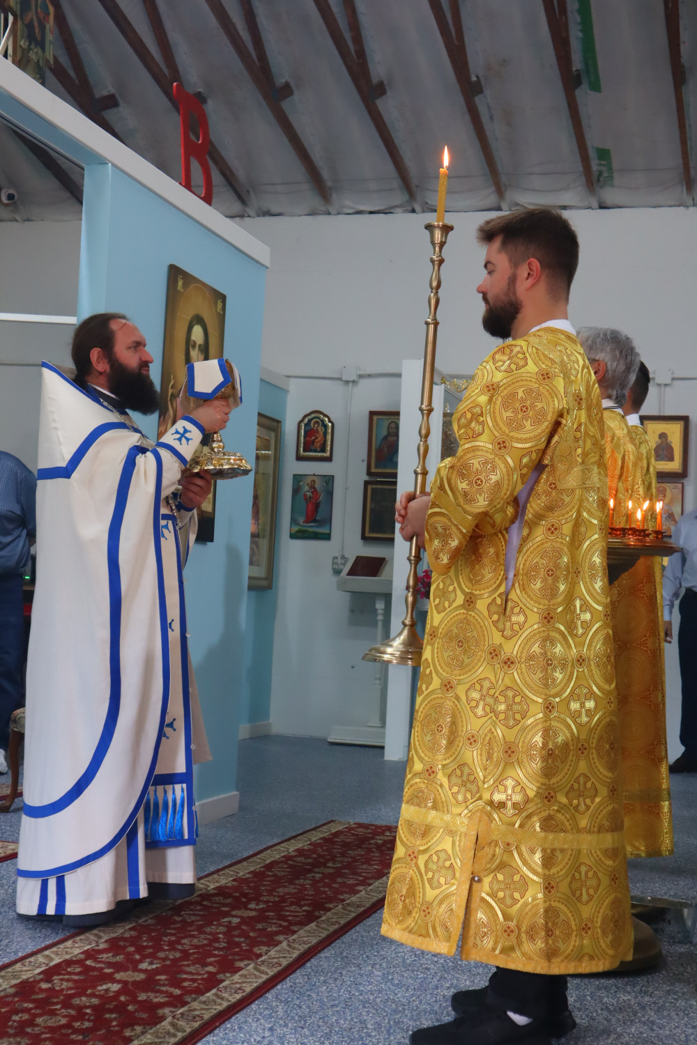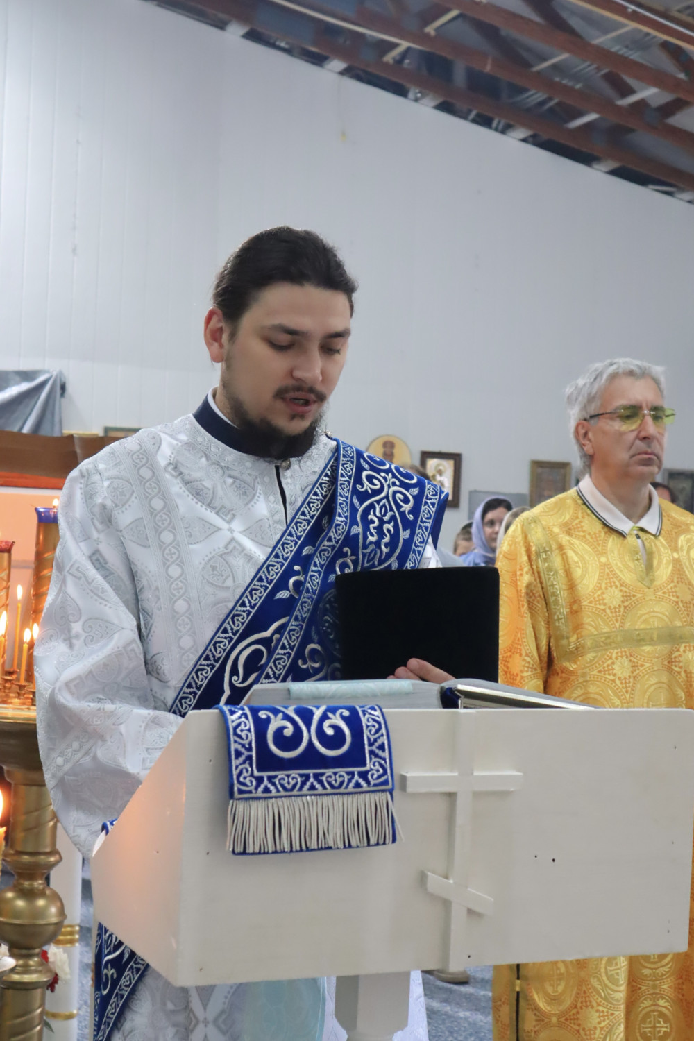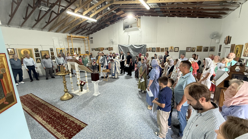 В воскресенье, после акафиста Почаевской иконе Божией Матери, была совершена Божественная литургия. Апостольское чтение было прочитано на двух языках — церковнославянском и английском.