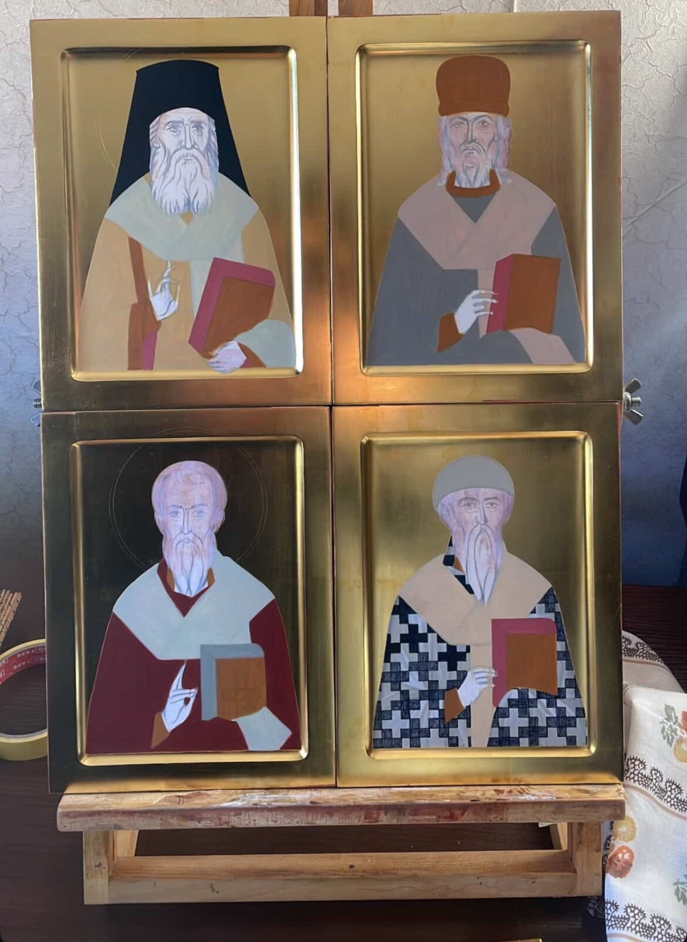 По милости Божией у нас имеются частицы мощей святых угодников Божиих. С благоговением и молитвой мы хотим написать иконы этих святых и вложить в них частицы их святых мощей, чтобы верующие могли с верой и молитвой обращаться к ним за помощью и заступничеством.