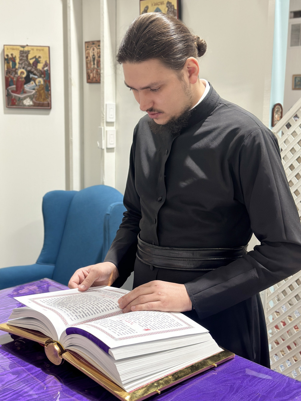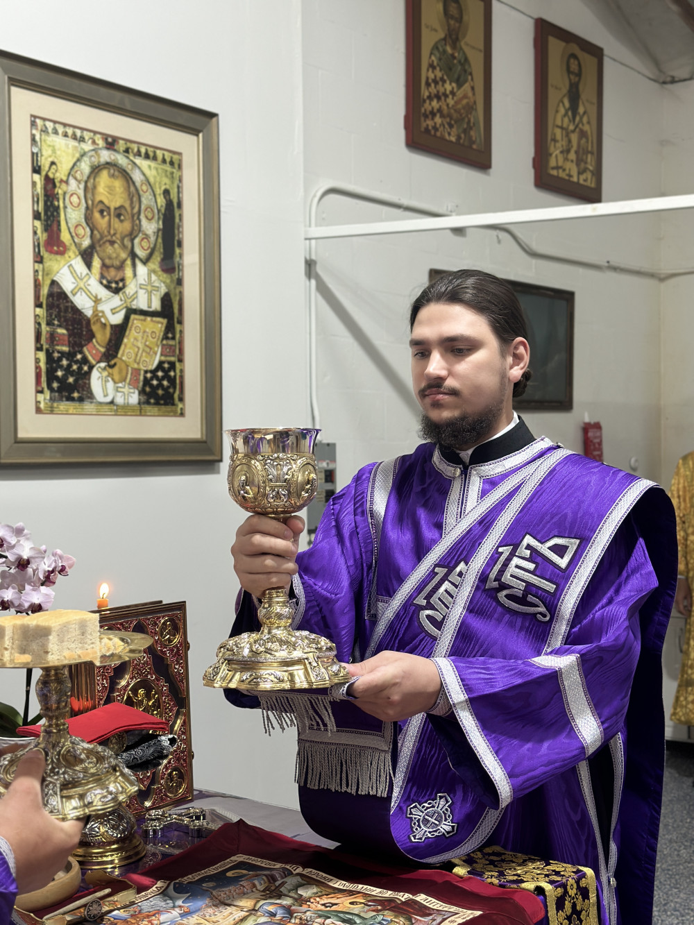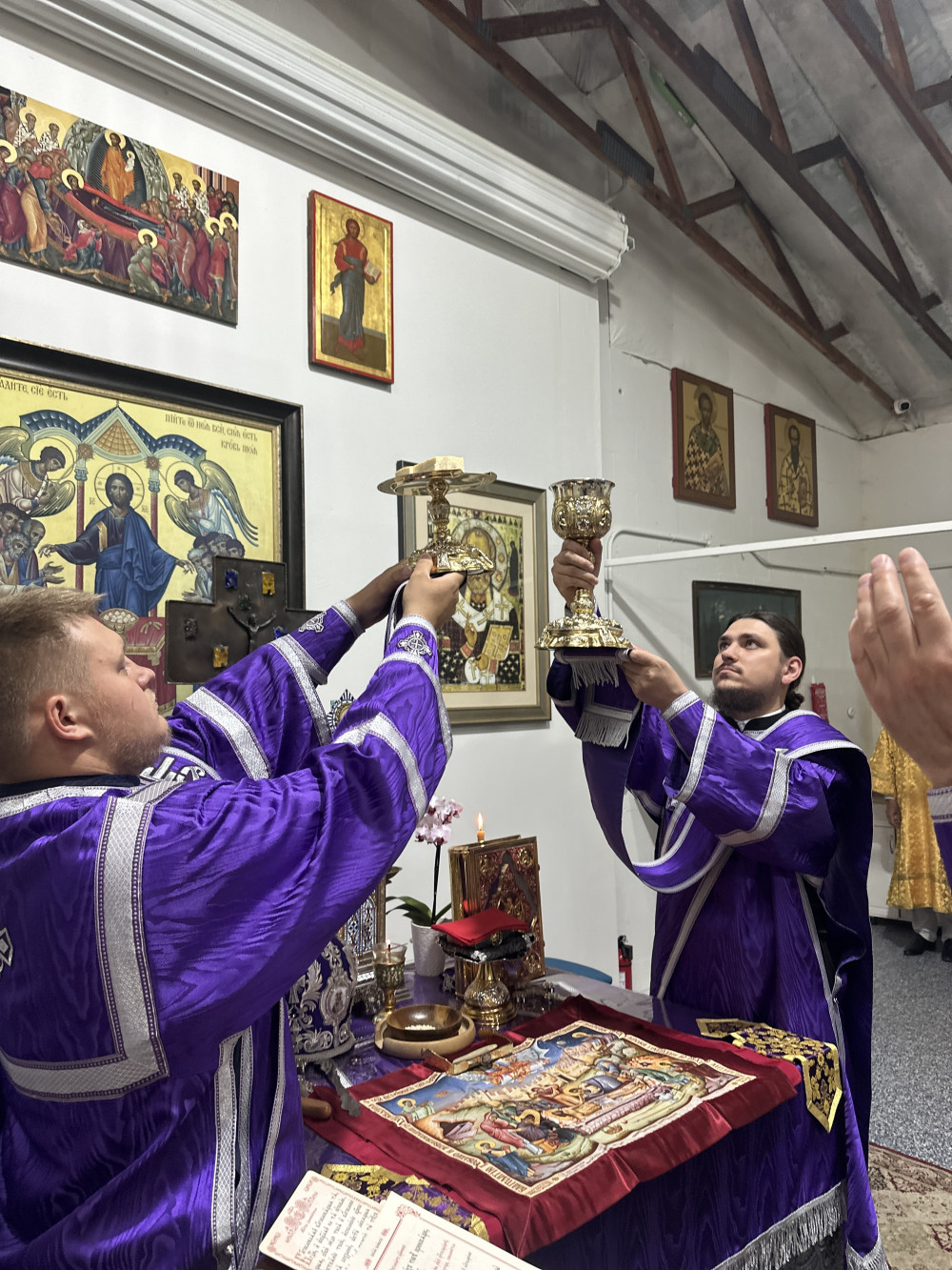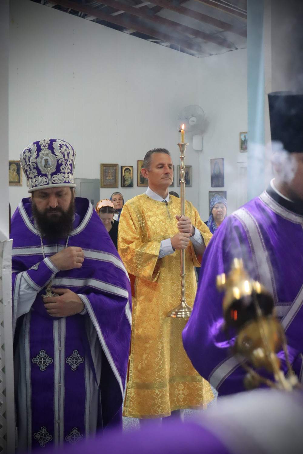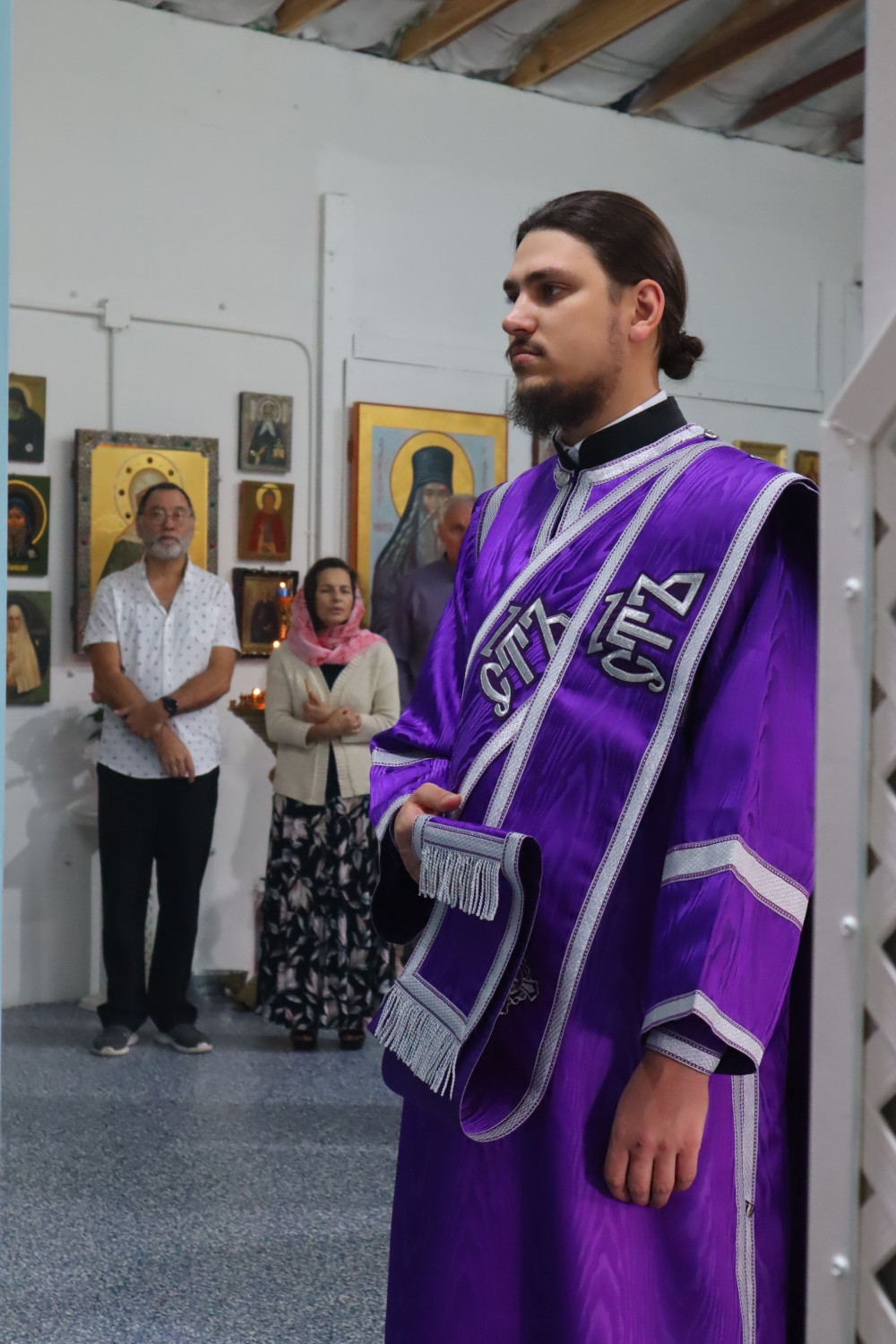 В конце литургии отец Стефан произнёс проповедь на тему евангельского чтения. Также батюшка поздравил с прошедшим днём рождения прихожан Анну и отроковицу Дарию. Именинникам пропели многолетие.