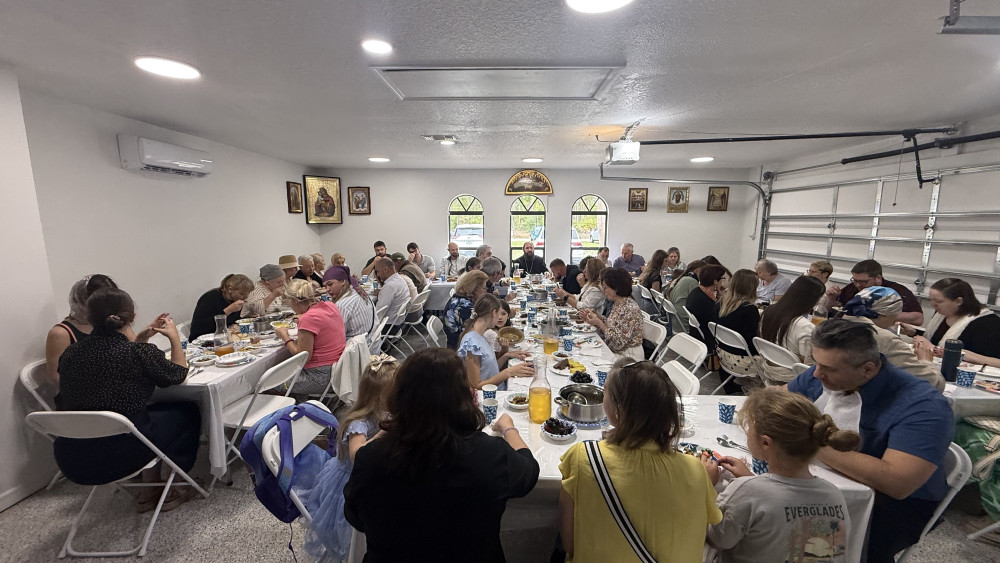 Служба завершилась общей трапезой и общением гостей, прихожан и монахов.
