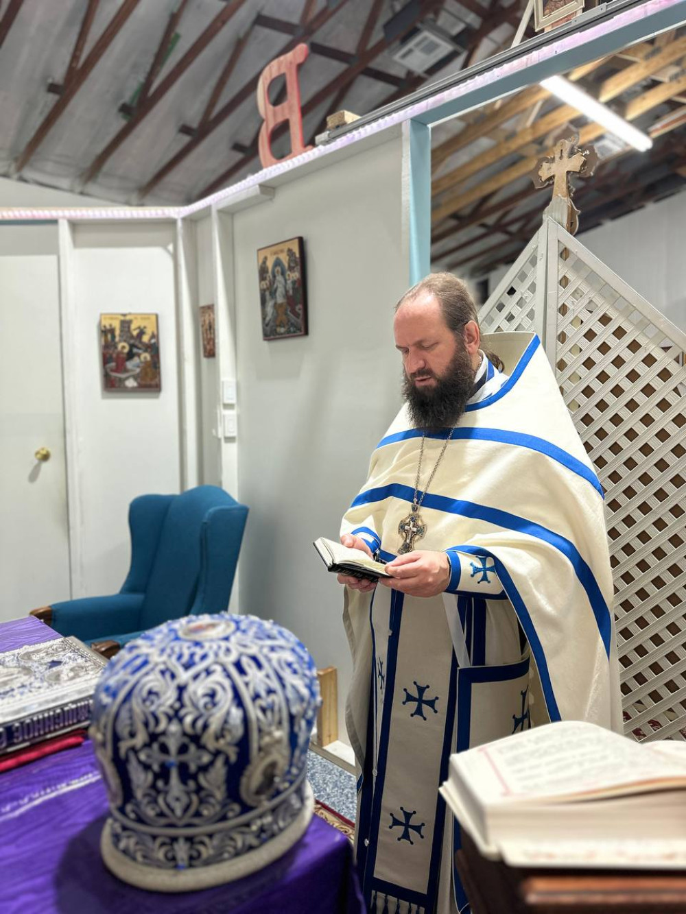 В конце богослужения отец настоятель поздравил всех с праздником Благовещения Пресвятой Богородицы и пожелал побольше добрых и радостных вестей от Господа. Также священник напомнил о 101-й годовщине преставления патриарха-исповедника Тихона (Белавина). Икона с частицей его мощей находится в храме Почаевской иконы Божией Матери. Частицу мощей в своё время любезно подарил обители митрополит Иларион (Капрал).