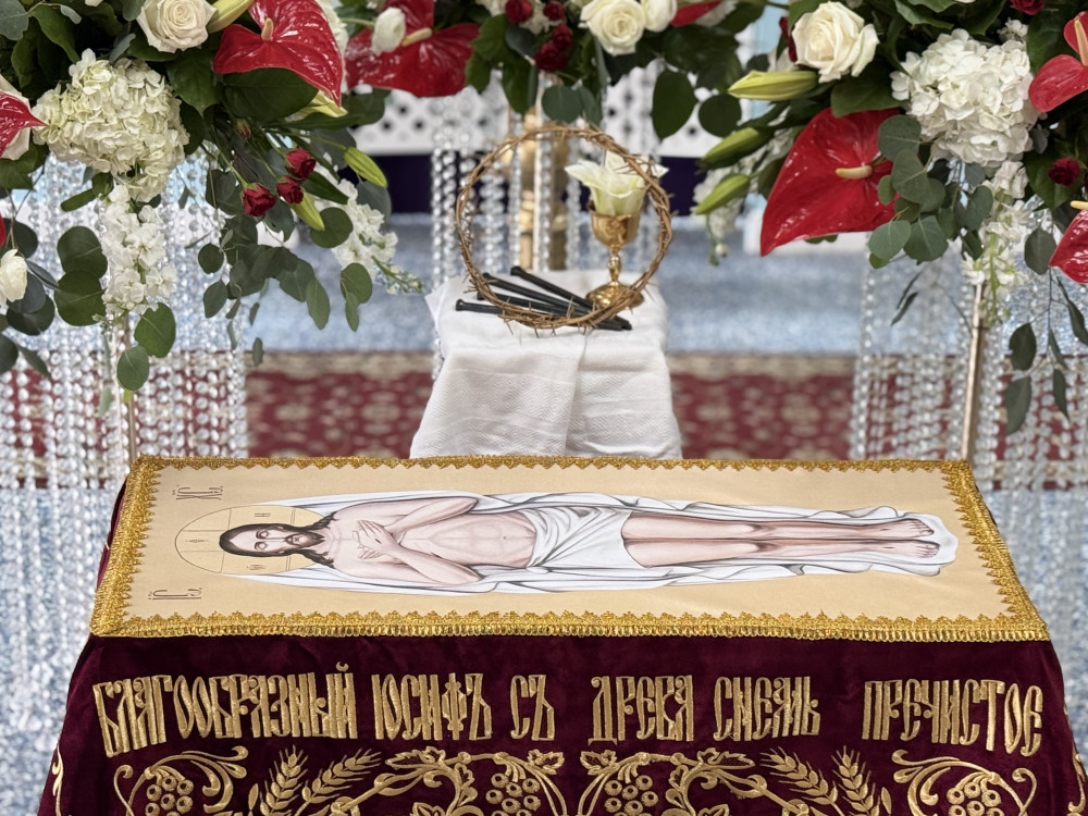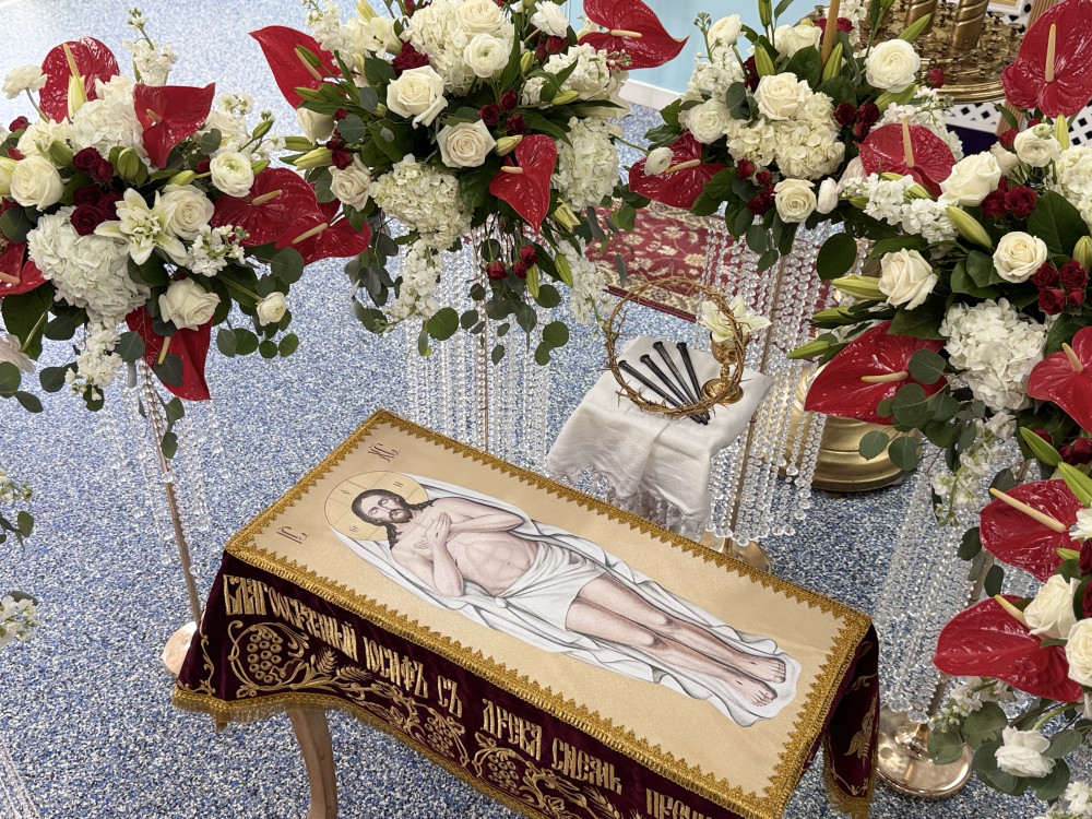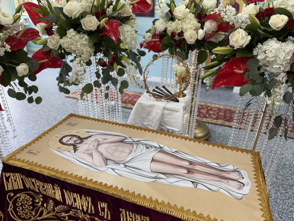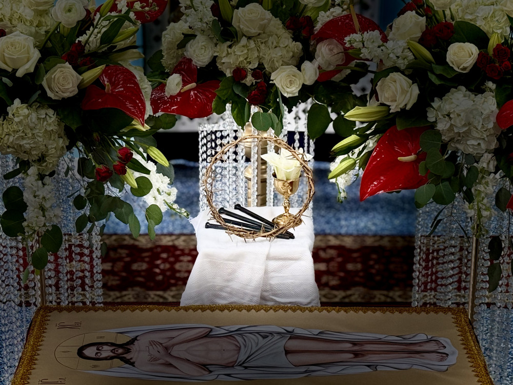 В тишине Великой пятницы верующие с благоговением предстают у гроба Господа, созерцая тайну Его Крестной жертвы и ожидая светлого торжества Воскресения.