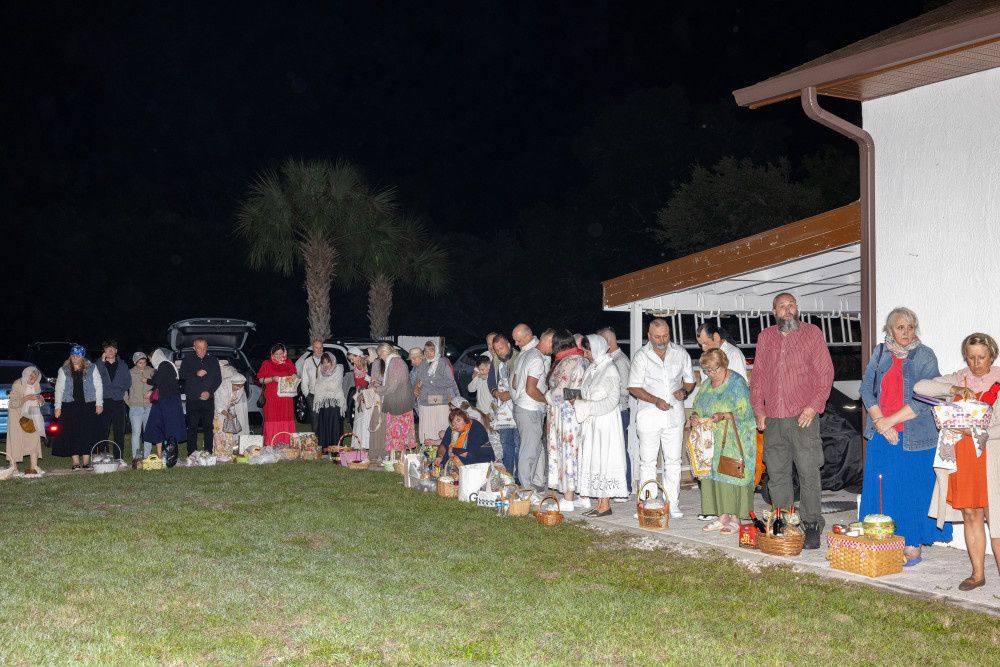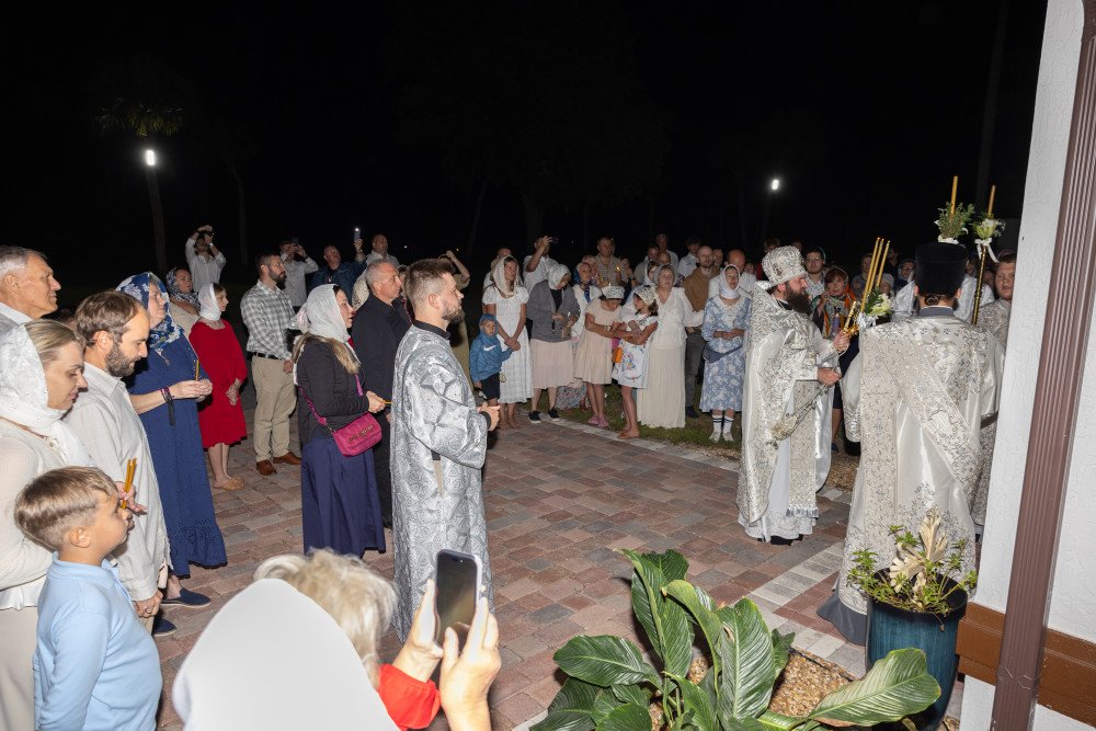 Пасхальная ночная служба началась с полунощницы и чтения канона Преблагословенной субботы перед Плащаницей Спасителя, находившейся в центре храма. Плащаница символизировала гробницу с Телом Христа. По окончании канона священник перенёс Плащаницу в алтарь и положил её на престол, где она будет находиться до Праздника Вознесения Господня.