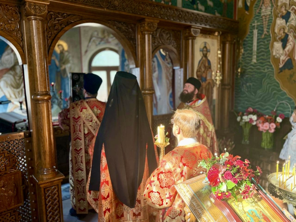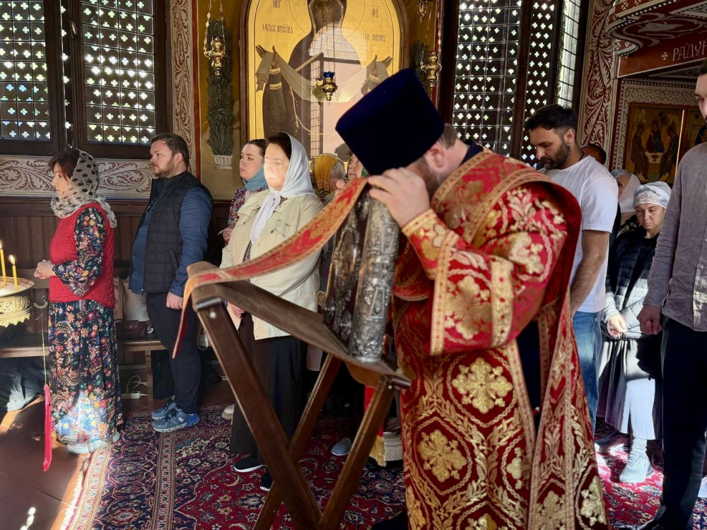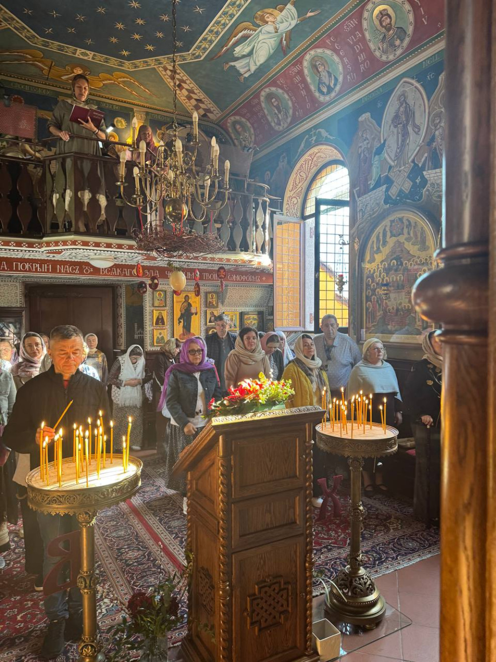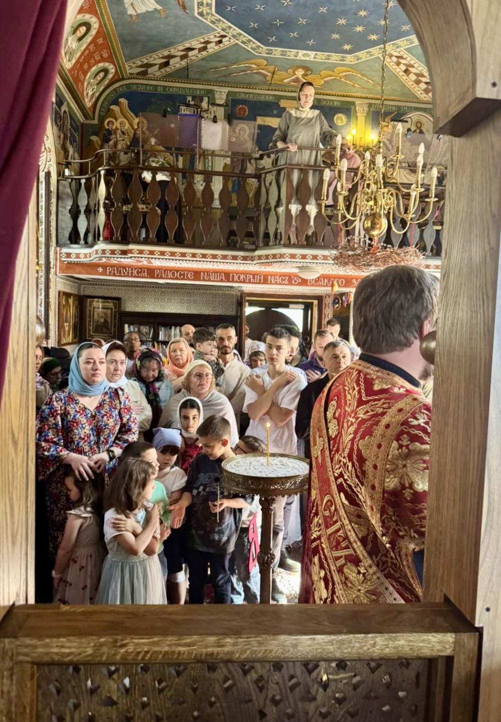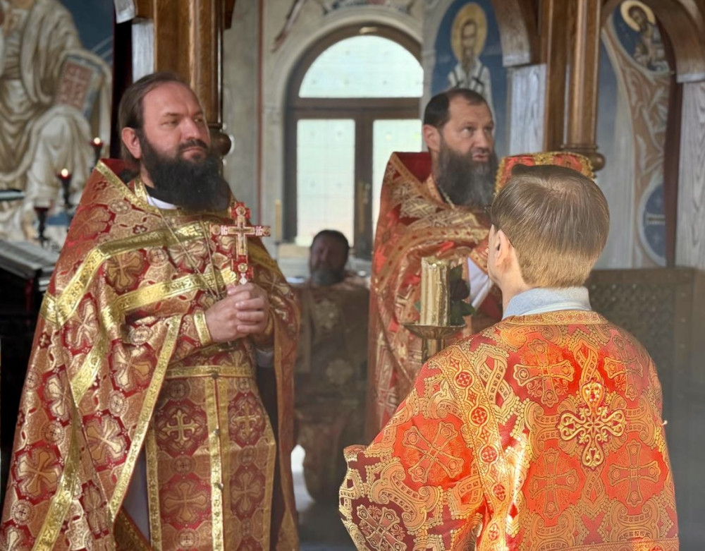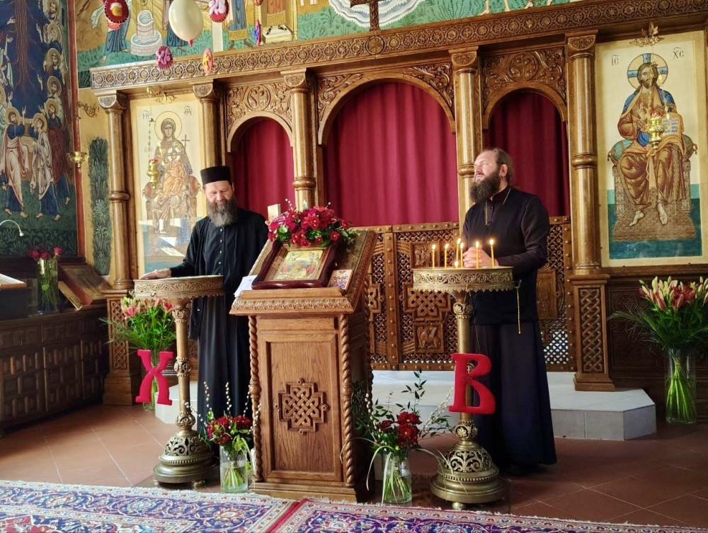 Божественную литургию совершили настоятель храма иеромонах Святослав, архимандрит Стефан (Хильчук) и протодиакон Алексий (все священнослужители родом из Украины).