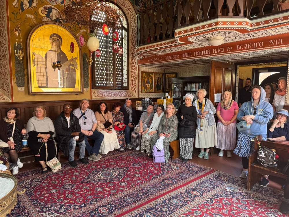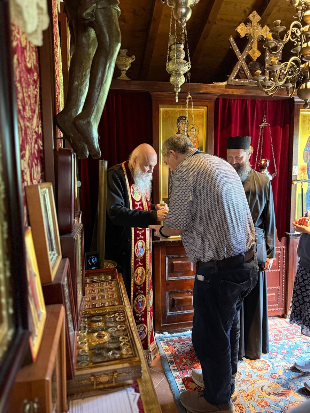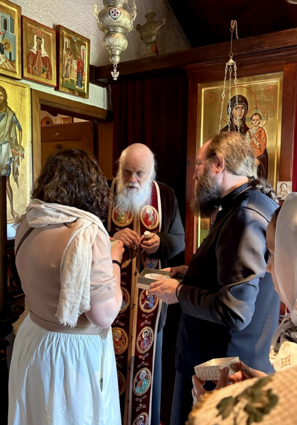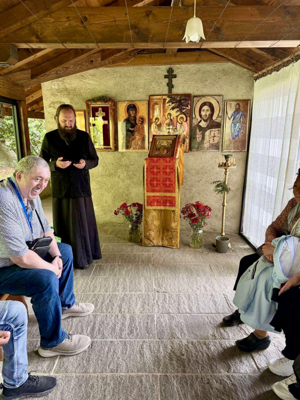 Отец Стефан поблагодарил отца Святослава за возможность послужить вместе и рассказал об истории и жизни монастыря Почаевской иконы Божией Матери. Следует отметить, что в этом приходе много прихожан — выходцев из Украины и России, которые были вынуждены покинуть свои дома, спасаясь от войны и других трудностей. Эти люди с трепетом и любовью встречали своих земляков, несущих служение Богу в далёкой Америке, и с интересом расспрашивали о жизни и служении.