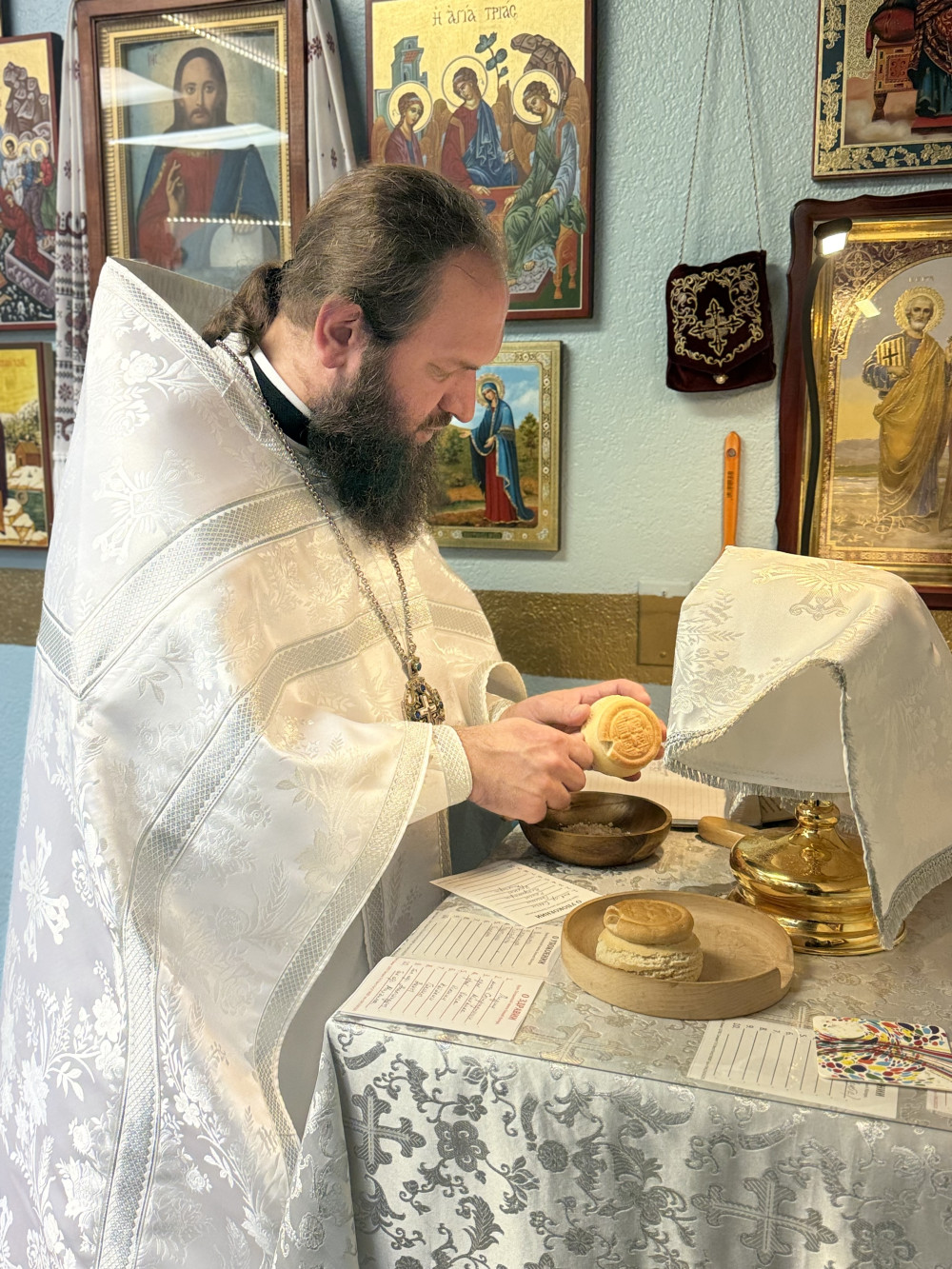 В сам день праздника Божественную литургию святителя Василия Великого совершали отцы Стефан, Паисий и Александр. Во время службы звучали особые прошения о здравии болящих и о помощи Божией в приобретении нового места для монастыря.