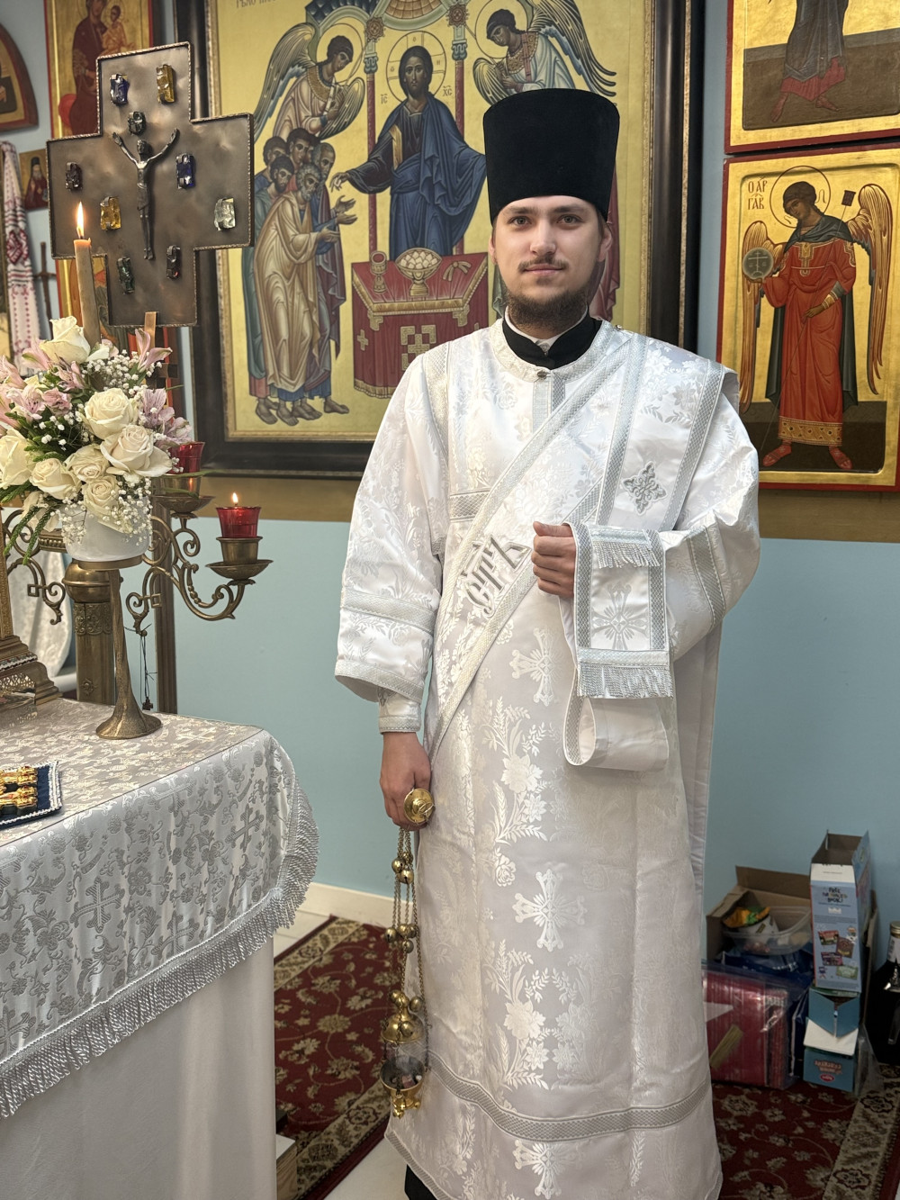 В конце литургии настоятель поздравил всех с праздниками, пожелал помощи Божией в новом году, а также вручил всем новогодние подарки на Старый Новый год.