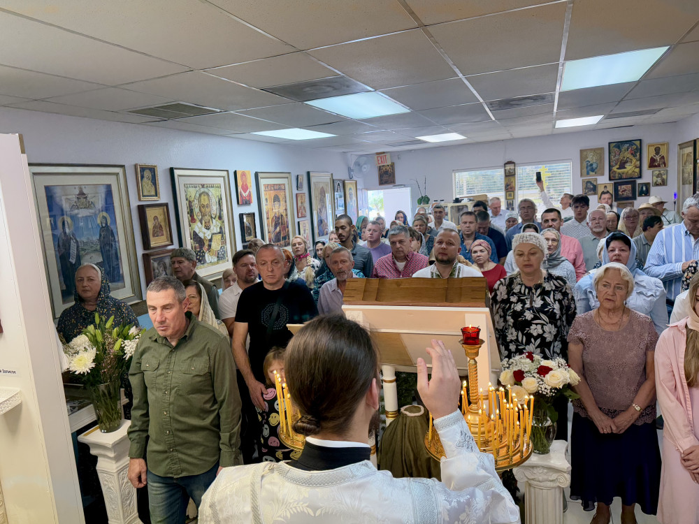 В сам день Праздника, в воскресенье, Божественную Литургию совершили настоятель храма архимандрит Стефан, иерей Даниил Соболев, иеродиакон Паисий и диакон Александр. На службе собралось множество прихожан и гостей храма, многие из которых причастились. После Литургии на улице перед храмом состоялся чин Великого освящения воды.