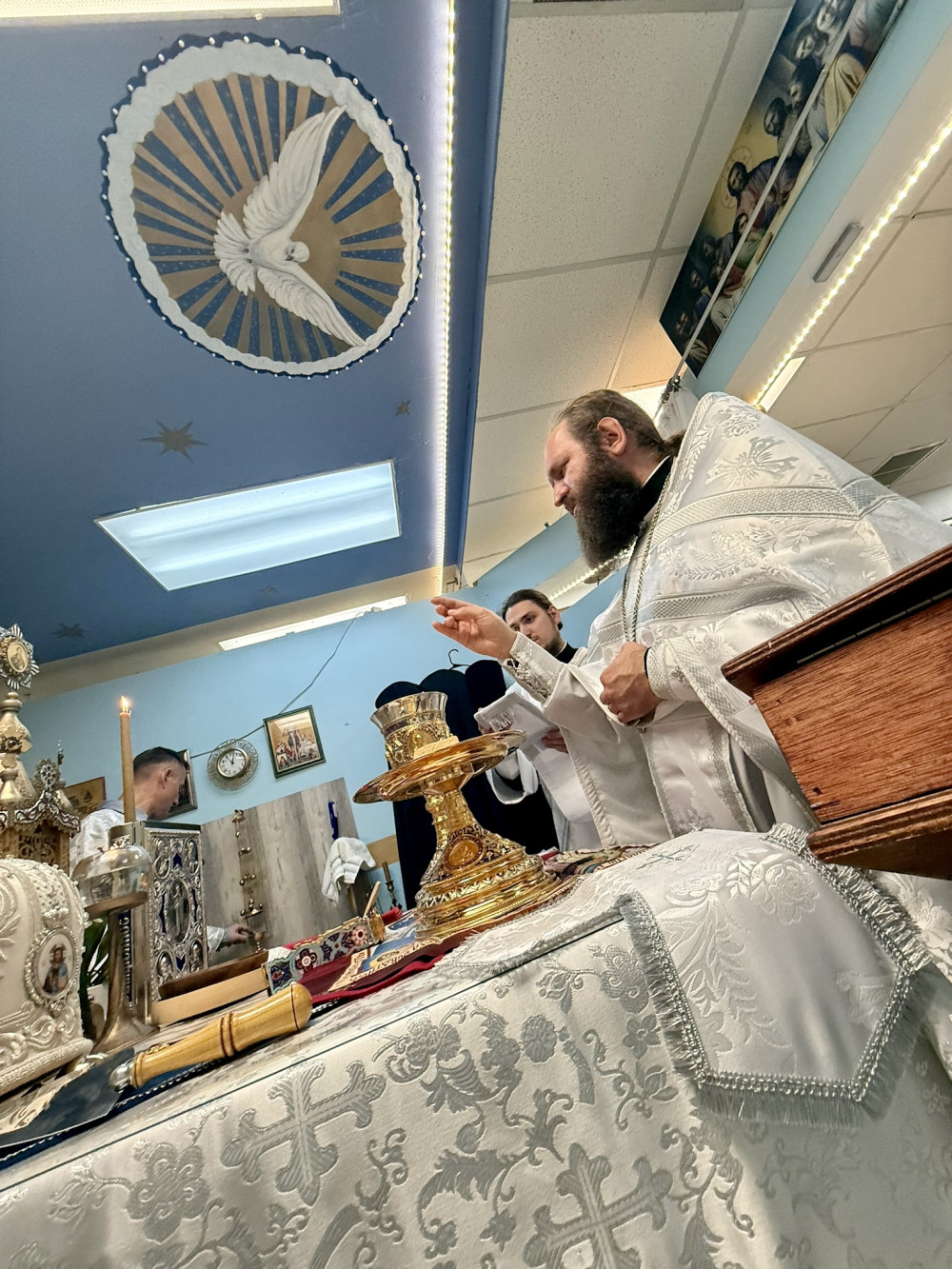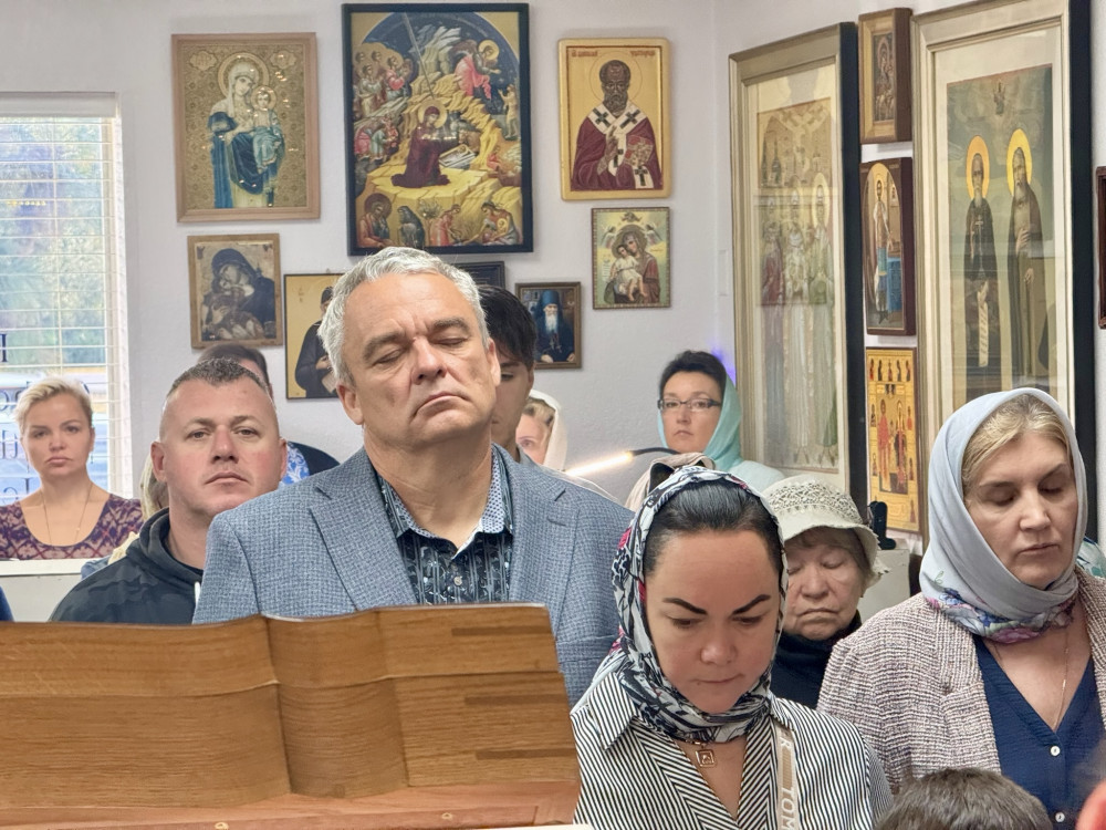 В сам Воскресный день, после акафиста Почаевской иконе Божией Матери, Божественную Литургию служили настоятель монастыря архимандрит Стефан, иеродиакон Паисий и диакон Александр. Украшением Литургии стало прекрасное пение хора под управлением Наталии Клюсовой и помощи о. Аркадия.