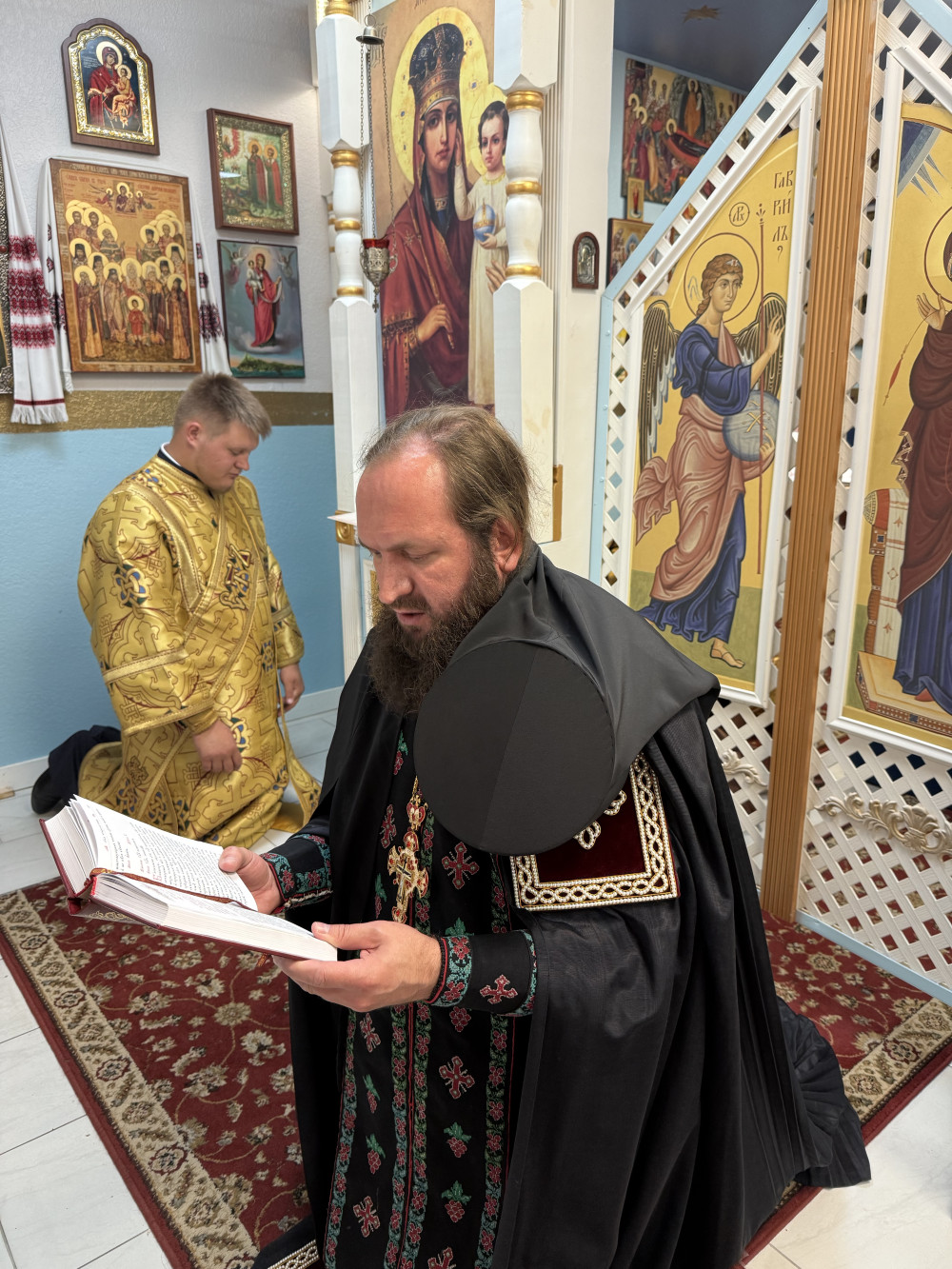 Всенощное бдение в субботу вечером совершили клирики храма: иеромонах Аркадий (Полищук) и диакон Александр Хартонюк. На клиросе пели отцы Стефан (Хильчук) и Паисий (Алексеевец).