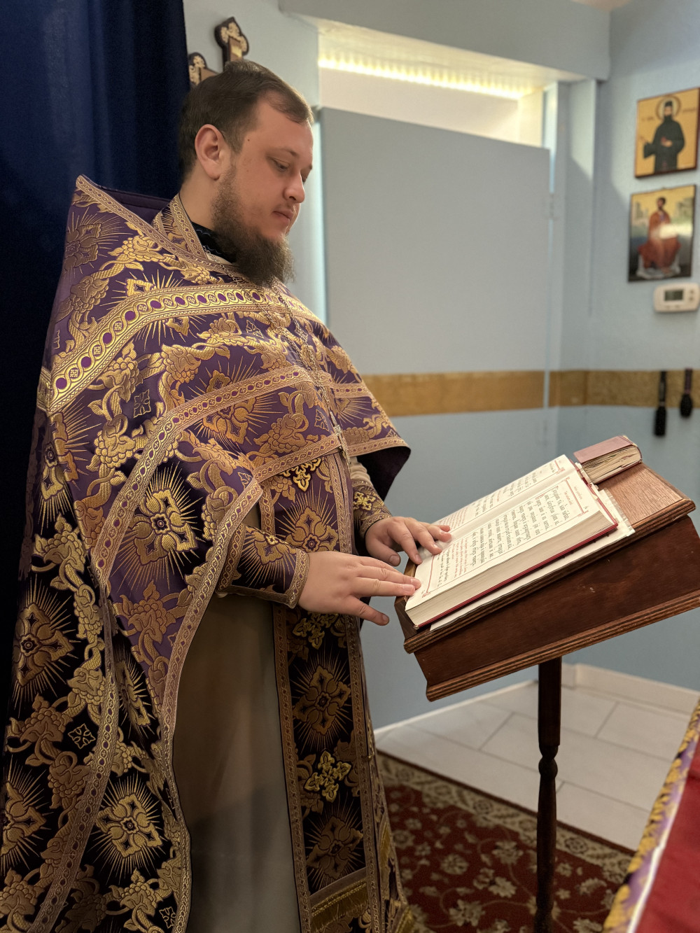 В субботу первой седмицы Великого поста Святая Церковь отмечает память святого великомученика Феодора Тирона. В этот день в храме была совершена Божественная литургия, которую возглавил иеромонах Аркадий. Настоятель храма архимандрит Стефан и иеродиакон Паисий пели на хоре, украшая богослужение молитвенным пением. Вместе с ними пела и хористка Лера, для которой этот день был особенным – сегодня она отмечает свой день рождения.