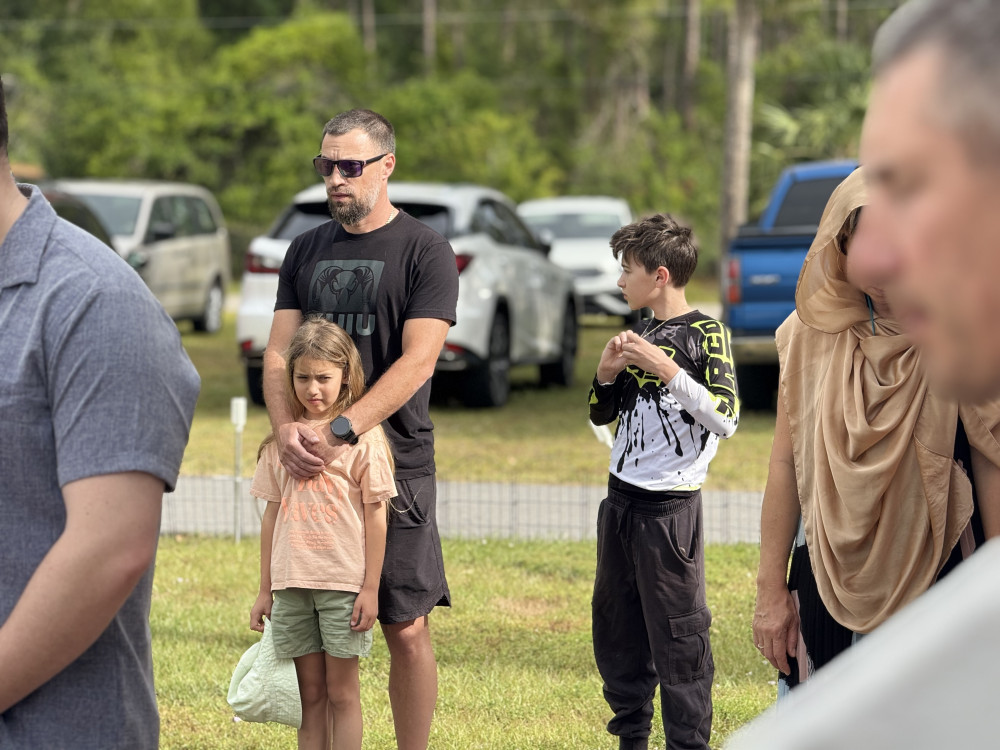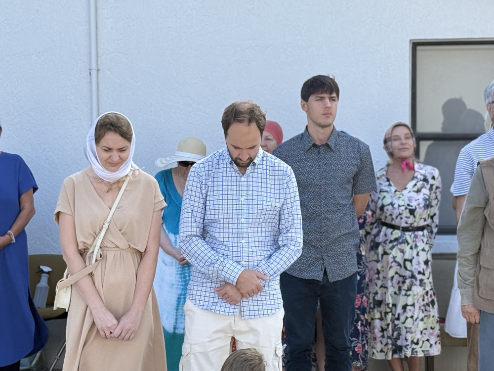 В сам воскресный день Божественная литургия была отслужена под открытым небом, рядом с храмом. В храме был устроен временный алтарь, а хор и прихожане молились на улице.