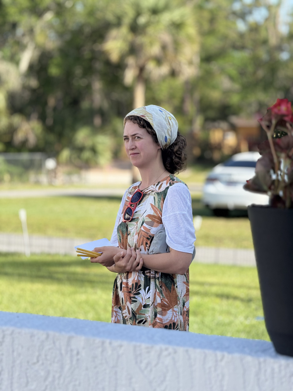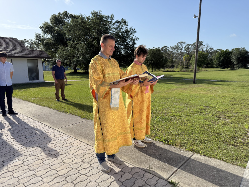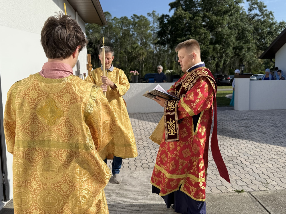 Алтарь устроили в боковых дверях храма, а хористы и прихожане молились под тёплым флоридским небом. Богослужение украсило пение хора под руководством регента Наталии. Также на клиросе пели отцы Аркадий, Паисий и другие хористы.
