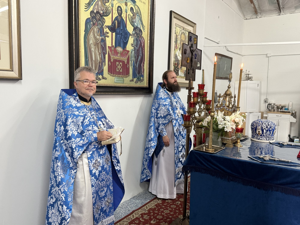 В завершение богослужения отец настоятель поздравил всех с праздником, а также напомнил о важном юбилее — столетии блаженной кончины святого патриарха-исповедника Тихона (Белавина), частица мощей которого в своё время была передана монастырю митрополитом Иларионом (Капралом).