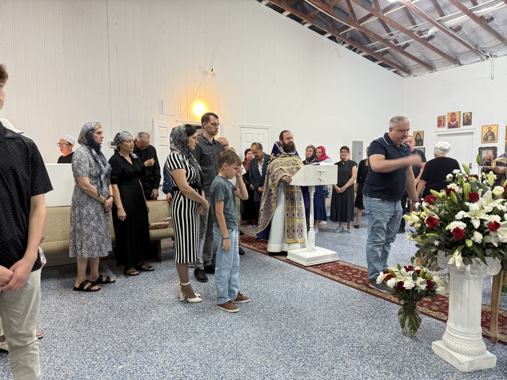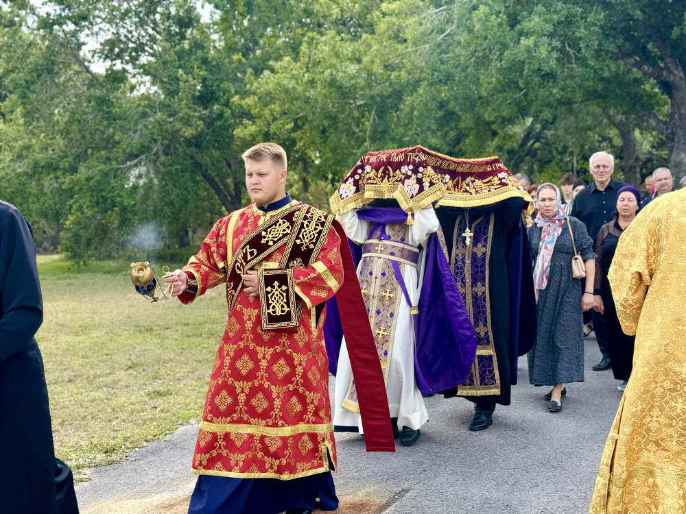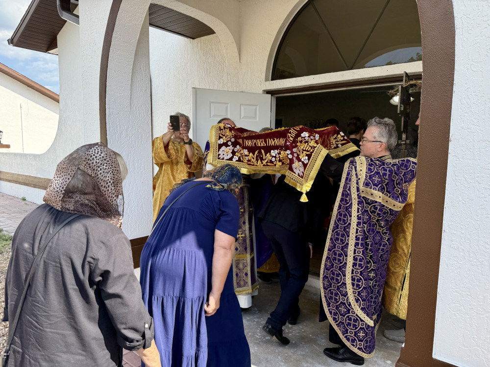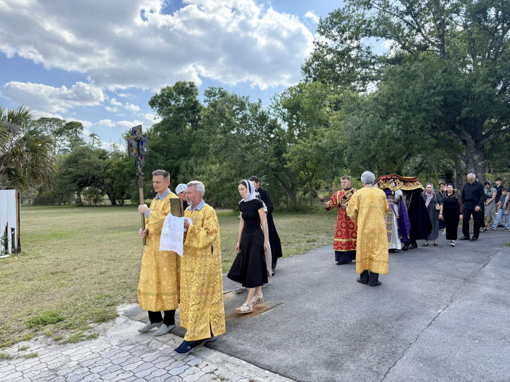 После пения Великого славословия священники обнесли Плащаницу с изображением Спасителя вокруг храма, что символизировало снятие с Креста и погребение Господа. Этот крестный ход стал особенным для новой обители — это был первый крестный ход в новом храме и новой общине.