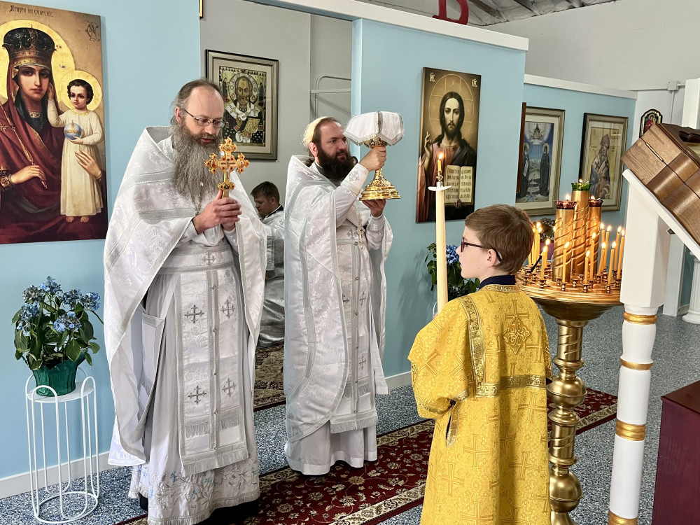 Божественную Литургию служили настоятель обители архимандрит Стефан, гость из Канады — протоиерей Алексий и диакон Александр. Литургию украсило вдохновенное пение хора под управлением Наталии Клюсовой. Также на клиросе пели отцы Аркадий и Паисий.