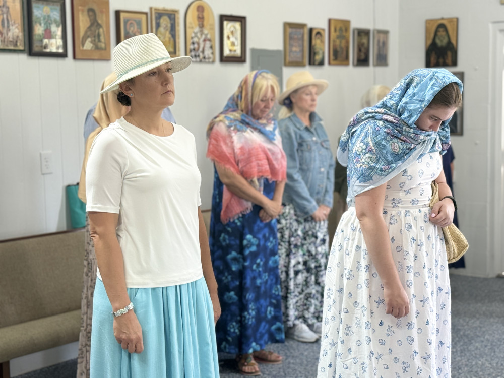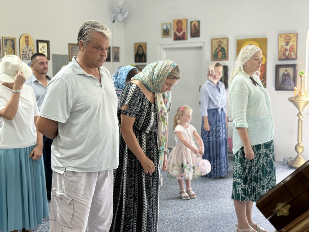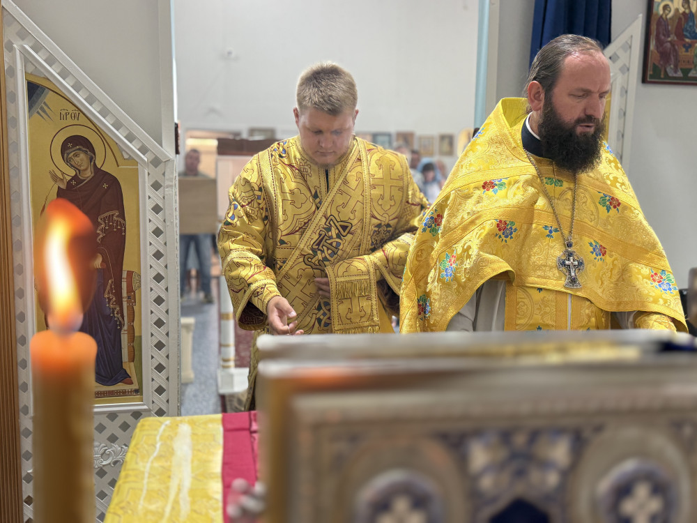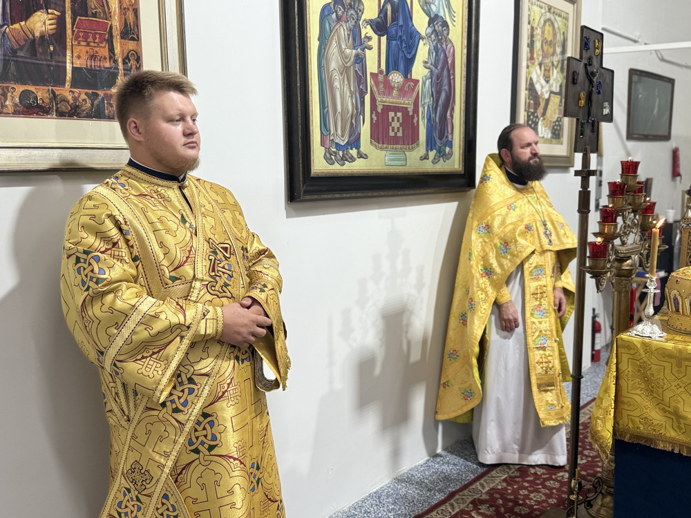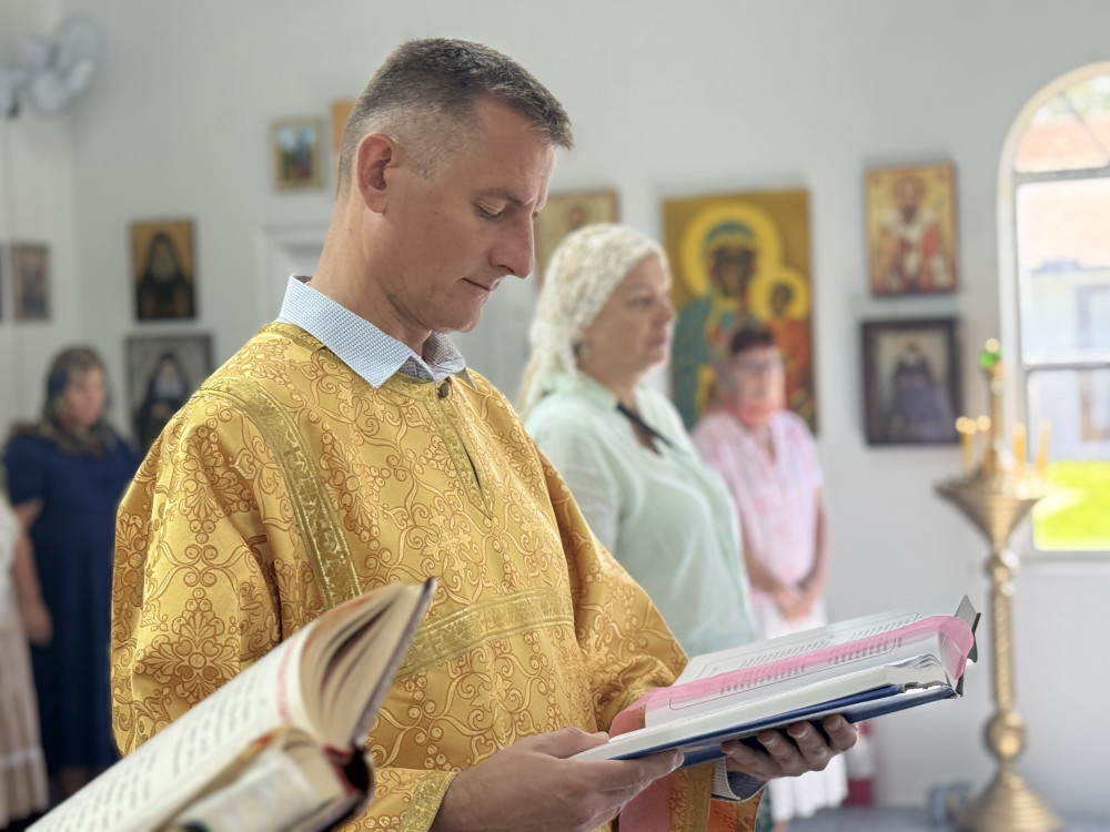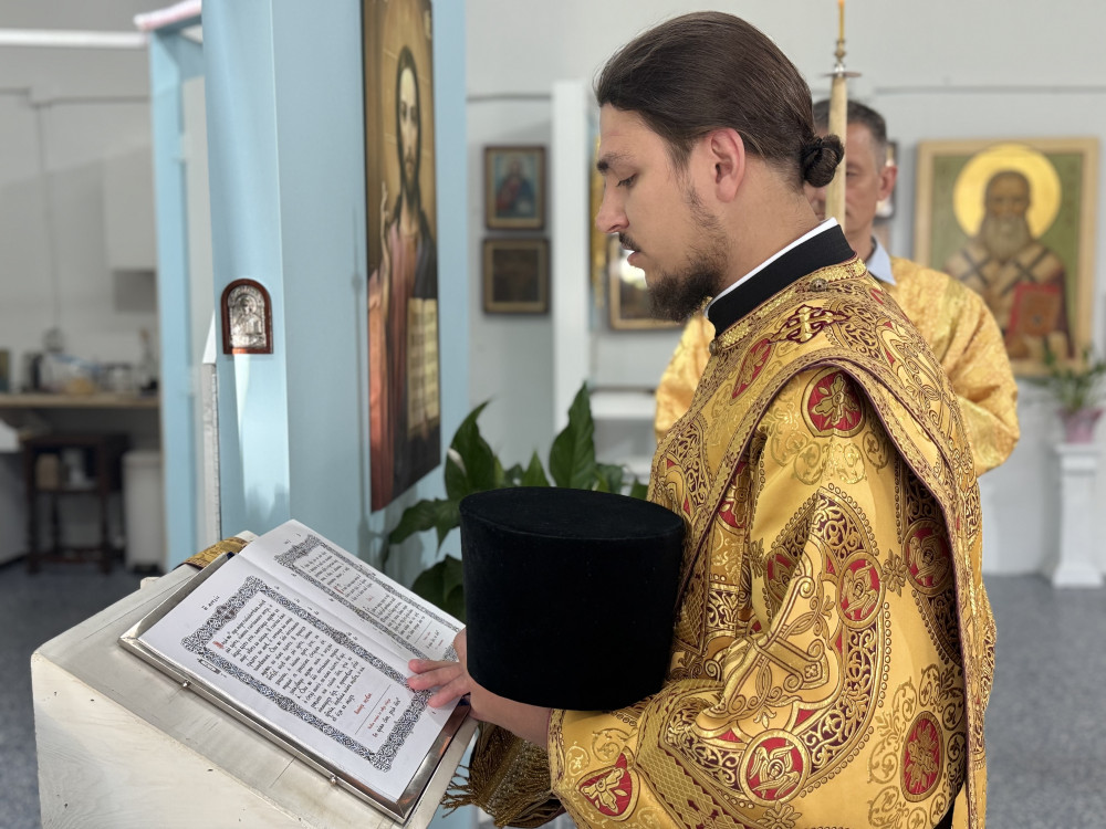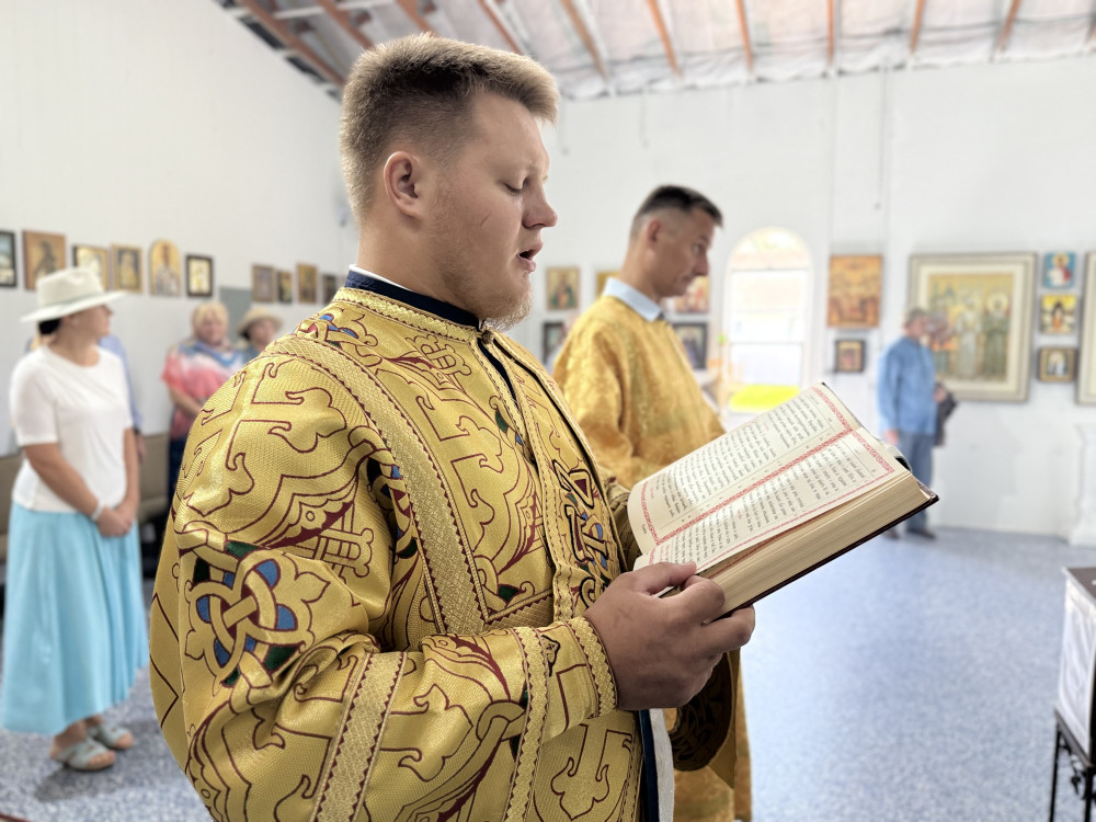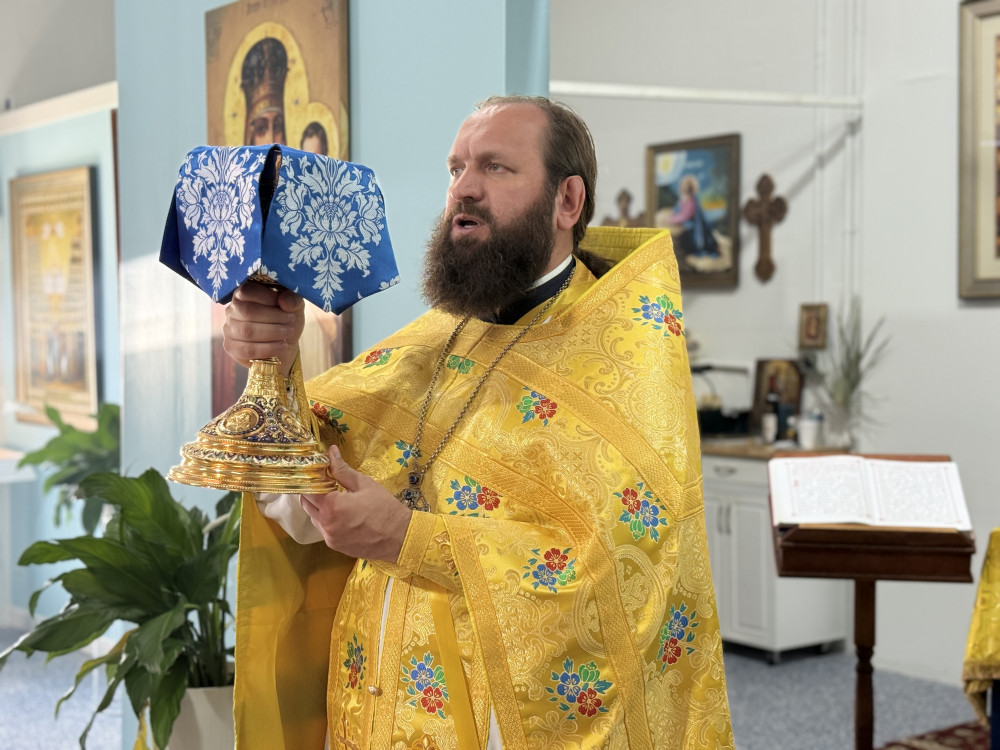 Воскресное богослужение началось с молебна с акафистом Почаевской иконе Божией Матери, который также возглавил отец Аркадий. Божественную литургию совершил настоятель храма отец Стефан в сослужении диаконов — отцов Паисия и Александра.