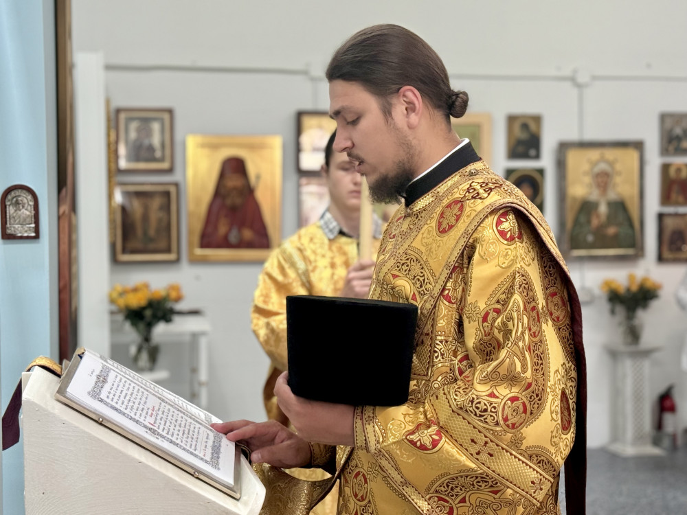 В воскресенье утром иеромонах Аркадий совершил молебен с акафистом Почаевской иконе Божией Матери.