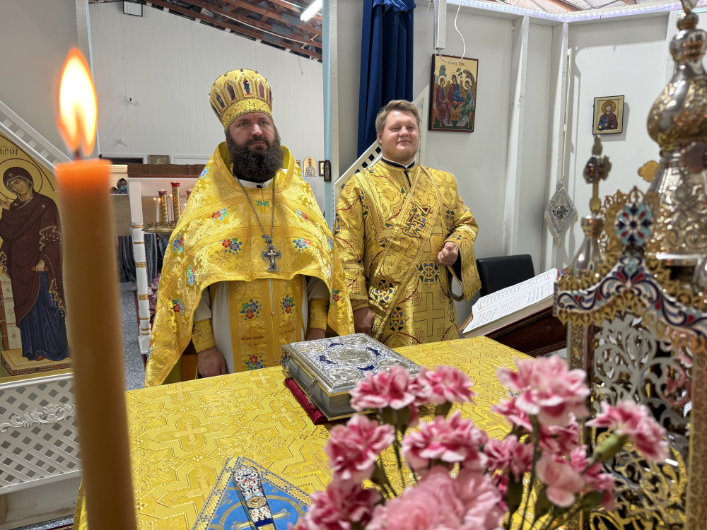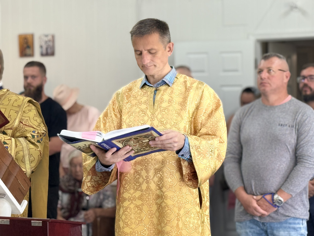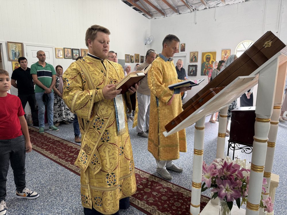 В воскресенье, после акафиста Почаевской иконе Божией Матери была отслужена Божественная Литургия. Литургию служили настоятель храма с диаконами отцом Паисием и отцом Александром.