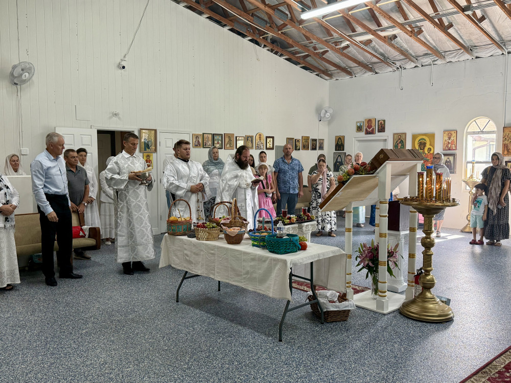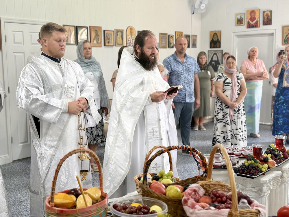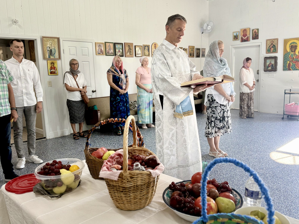 После заамвонной молитвы отцы Стефан и Александр вышли на середину храма, где были прочитаны молитвы на освящение плодов и винограда. Настоятель поздравил всех с праздником и пожелал каждому духовного преображения, напомнив о важности благодарности Богу за все Его милости, щедроты и дары.