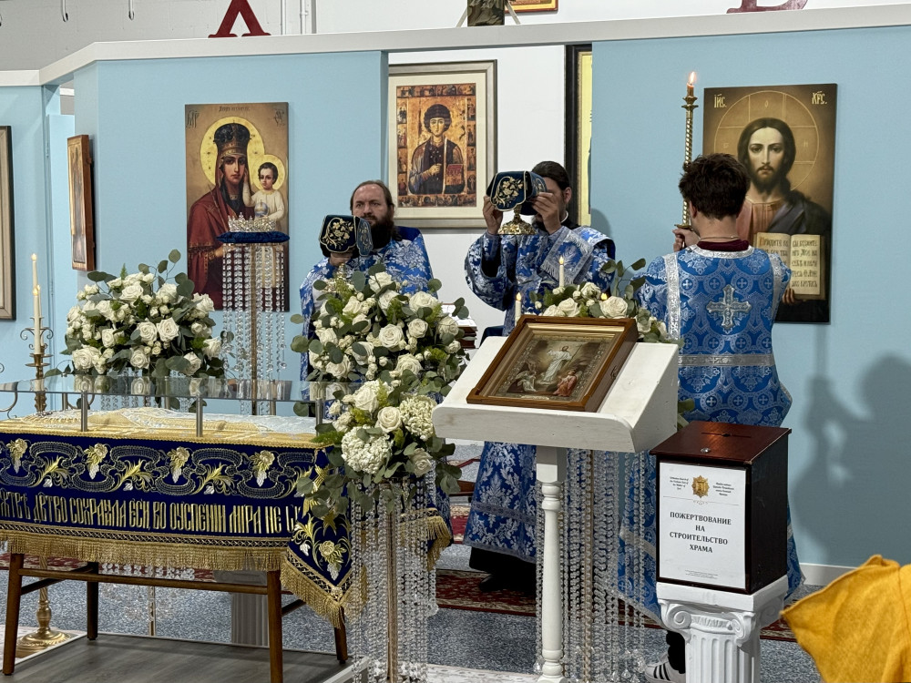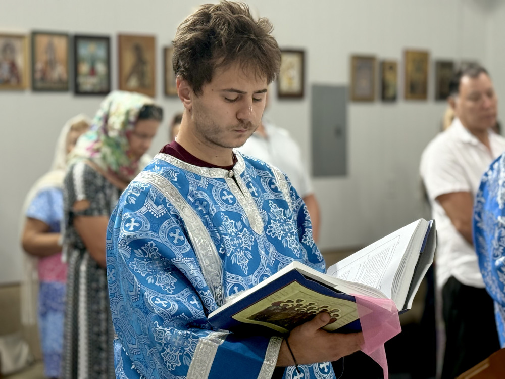 Воскресный день начался с молебна на всякую потребу с акафистом Почаевской иконе Божией Матери, который отслужил отец Аркадий. Божественную литургию совершали архимандрит Стефан, иеродиакон Паисий и диакон Александр. Особую духовную атмосферу богослужению придавало вдохновенное пение хора под управлением регента Валерии Суровой. Изюминкой стало исполнение Херувимской песни на древний грузинский напев.