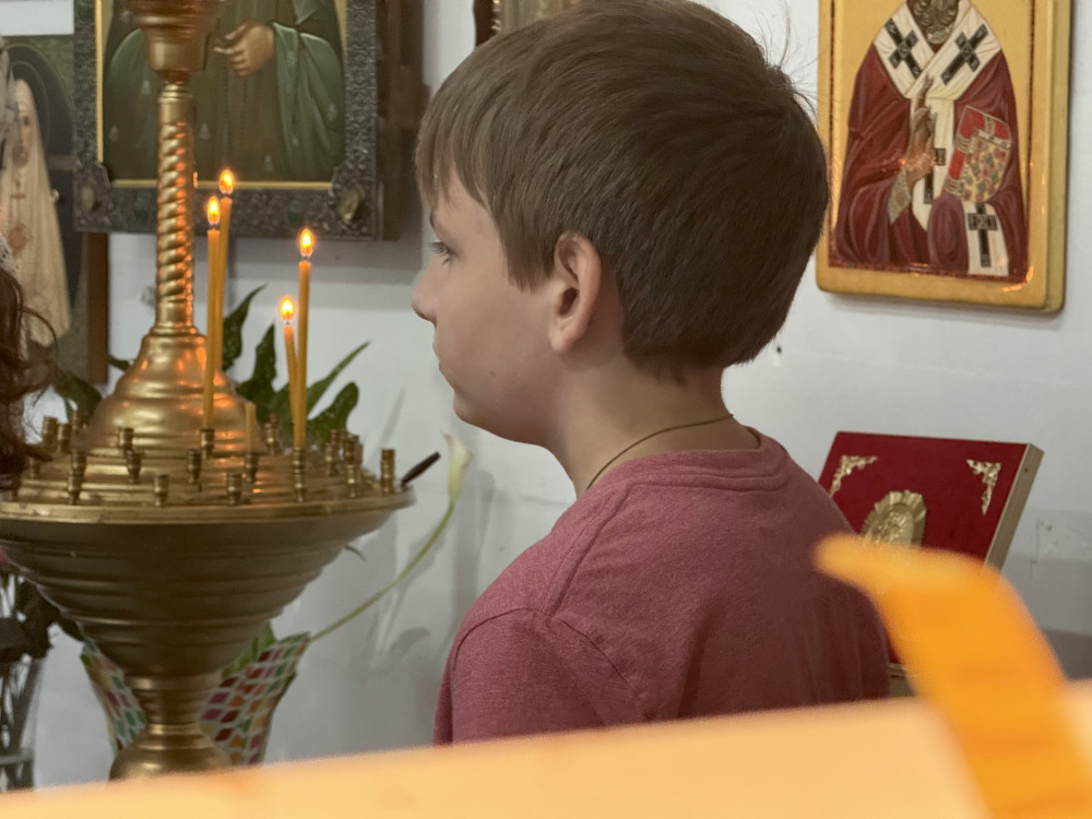 Воскресное утро началось с акафиста Почаевской иконе Божией Матери на распев, который совершил отец Аркадий. Он также исповедовал прихожан и помогал петь на клиросе.