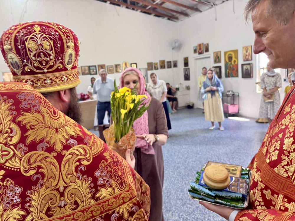 Также настоятель поздравил с днём рождения прихожанку Инну, вручив ей цветы и иконку.
