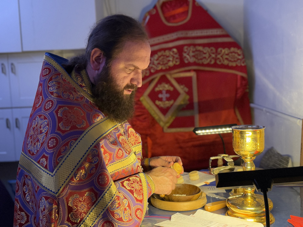 В 23:45 перед Литургией отец Аркадий (Полищук) исповедовал прихожан, после чего были прочитаны Часы.