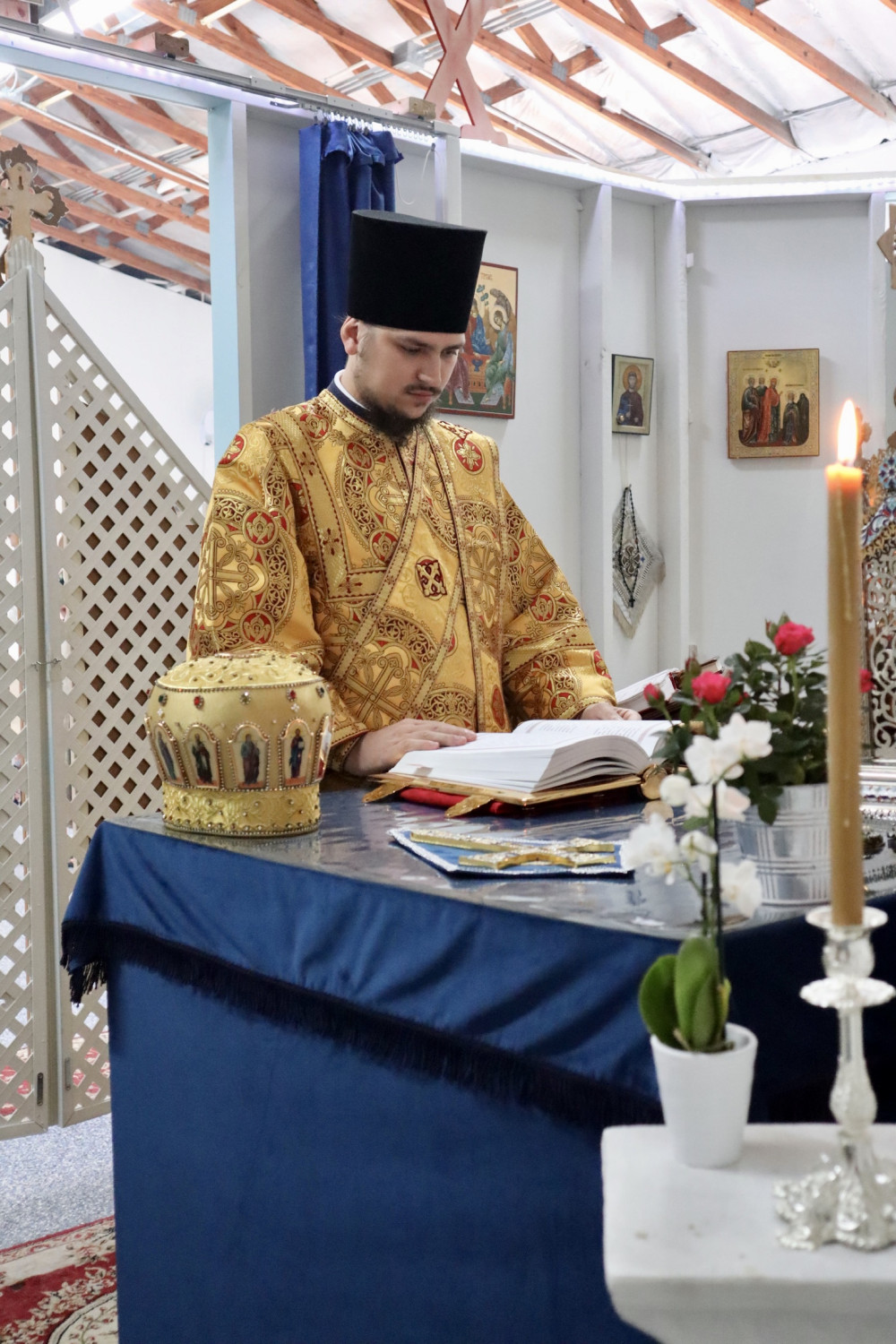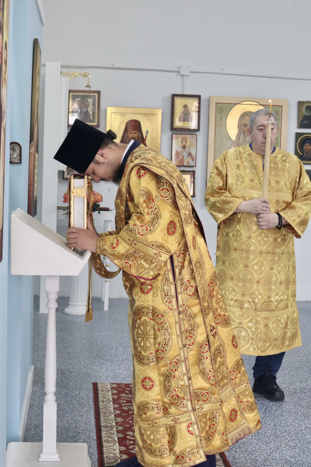 В завершение литургии отец Стефан поздравил всех с воскресным днём и пожелал помощи Божией на предстоящую неделю. Настоятель также рассказал об истории Седьмого Вселенского Собора и о важности почитания Иверской иконы Божией Матери.