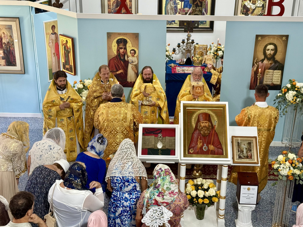 После слов отца Сергия священство, прихожане и гости подходили к аналою с Евангелием, иконе святителя Иоанна Шанхайского с мощами и ковчежцу со святынями, чтобы приложиться к ним. Отец Сергий возлагал на головы молящихся скуфейку, которую носил святитель при жизни. Другие священники помазывали верующих святым елеем от раки мощей и раздавали иконки святого.