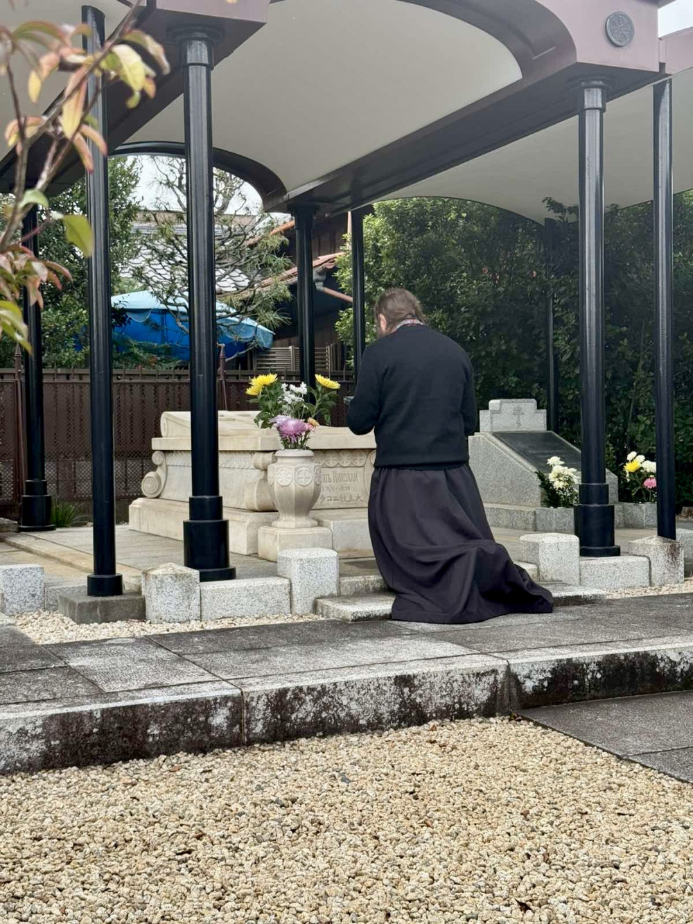 После литургии архимандрит Стефан в сопровождении монахини Магдалины (из обители Святой Софии Премудрости Божией в Токио) посетил кладбище, где находится могила архиепископа Николая Японского. Рядом также расположены захоронения митрополитов Японии Сергия (Тихомирова) и Феодосия, а также епископа Николая. Собравшиеся совершили молебное пение равноапостольному Николаю и литию об упокоении всех православных иерархов и мирян, живших в Японии.