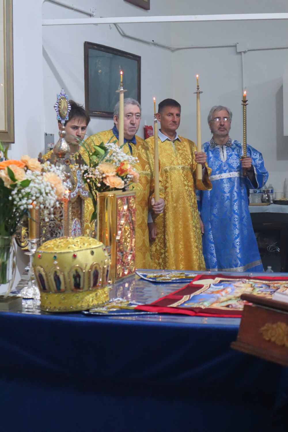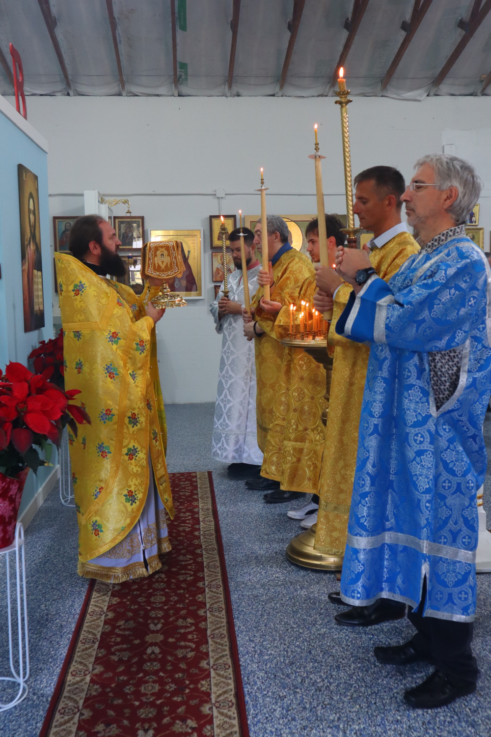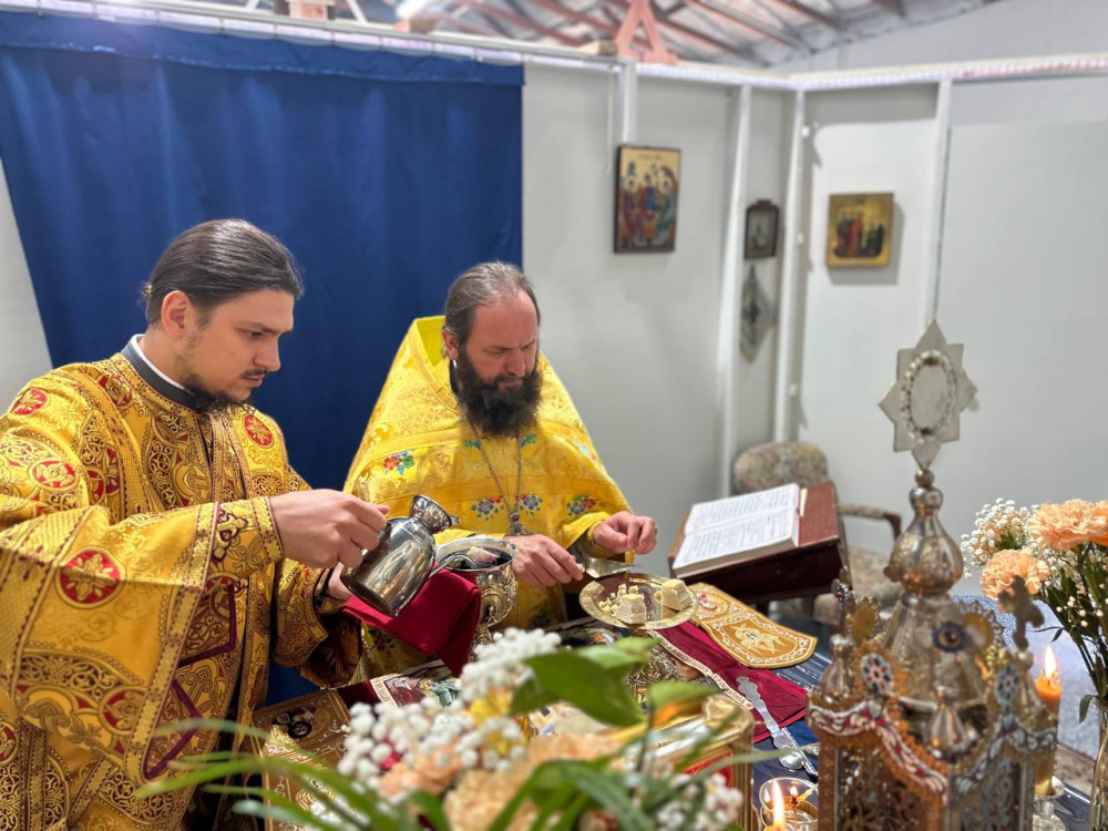 Клирики монастыря — иеромонах Аркадий (Полищук) и диакон Александр Хартонюк — служили, а архимандрит Стефан (Хильчук) и иеродиакон Паисий (Алексеевец), под управлением регента Валерии Суровой, пели на клиросе.