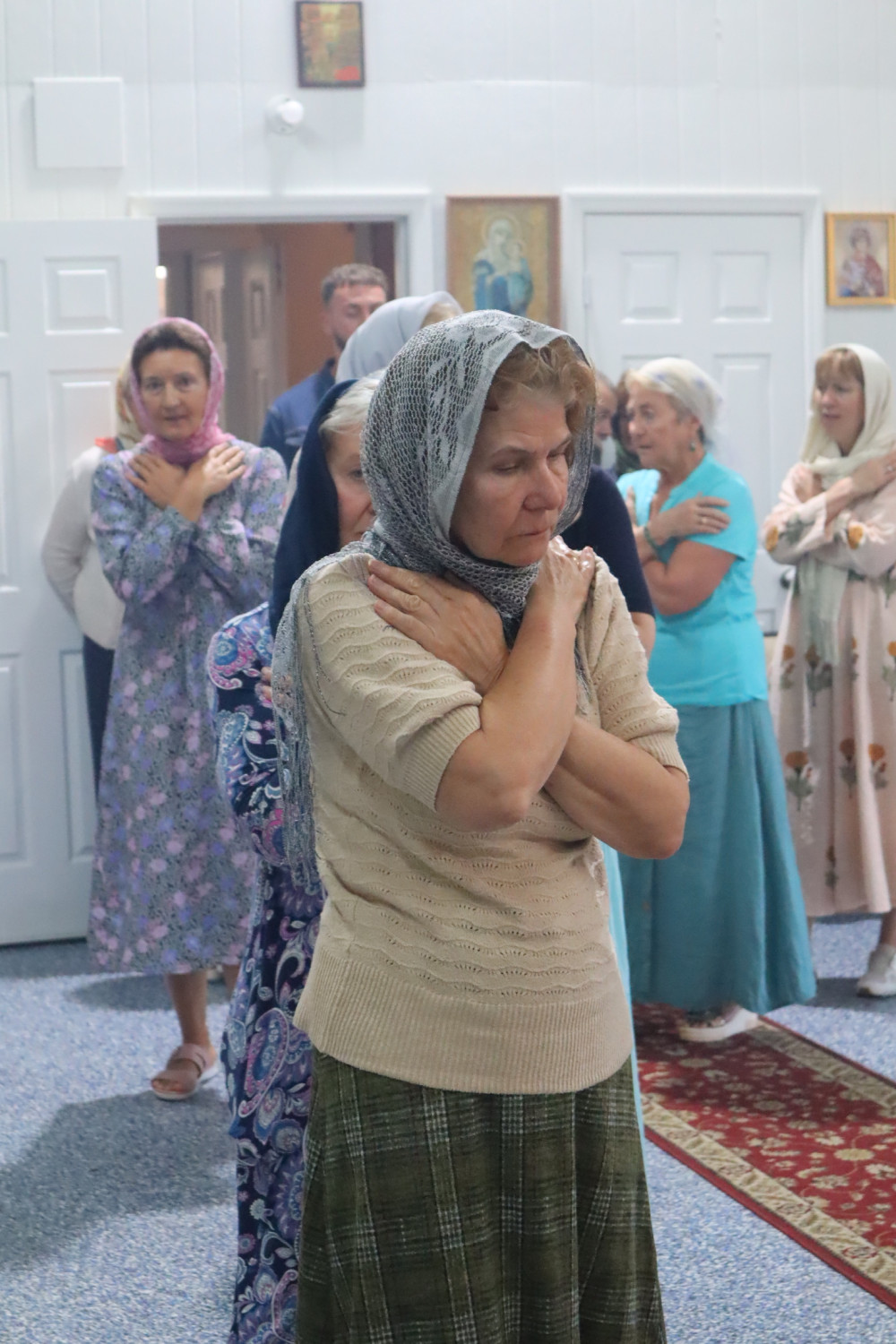 В воскресенье утром отец Аркадий отслужил молебен с акафистом (на распев) Почаевской иконе Божией Матери.