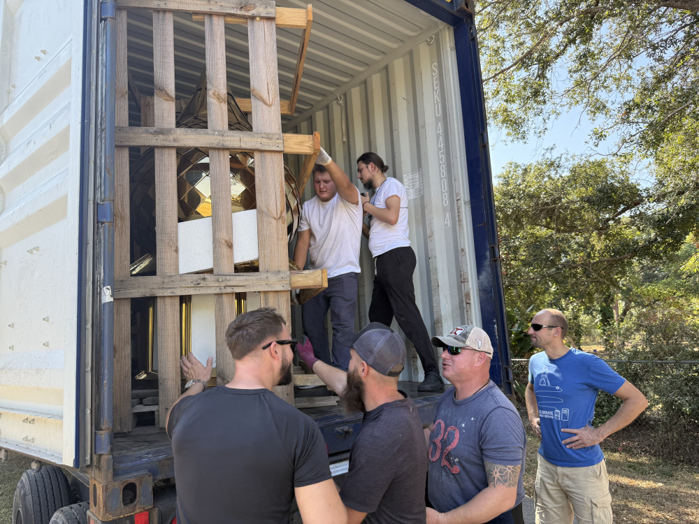 Сегодня в нашей общине произошло особое и по-настоящему радостное событие — в монастырь прибыл контейнер из Украины, который содержит иконостас, иконы, свечи, купола, а также престол, жертвенник, аналои, ковчеги и другие необходимые церковные вещи для нашего храма.