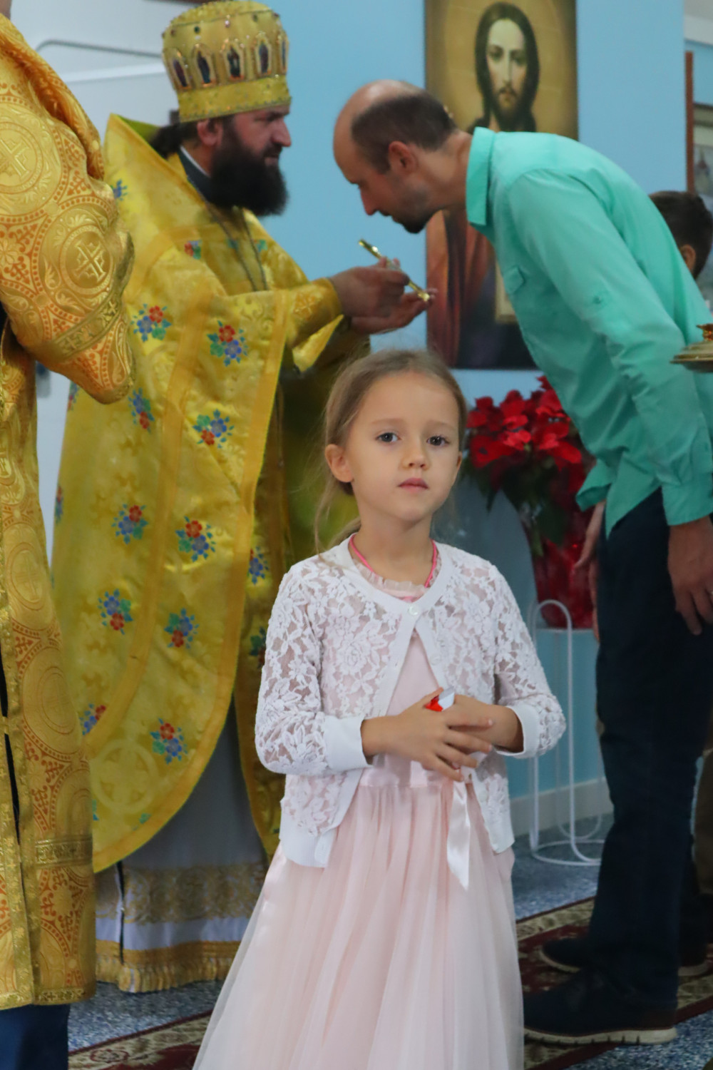 На Литургии почти весь храм приступил к Таинству Причастия.