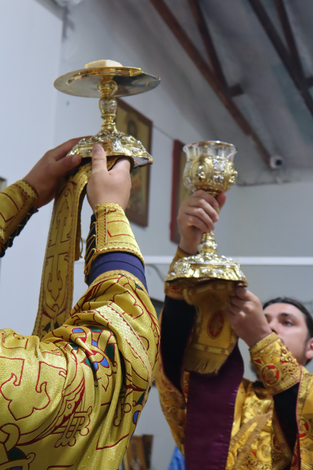 На литургии было много исповедников и причастников.