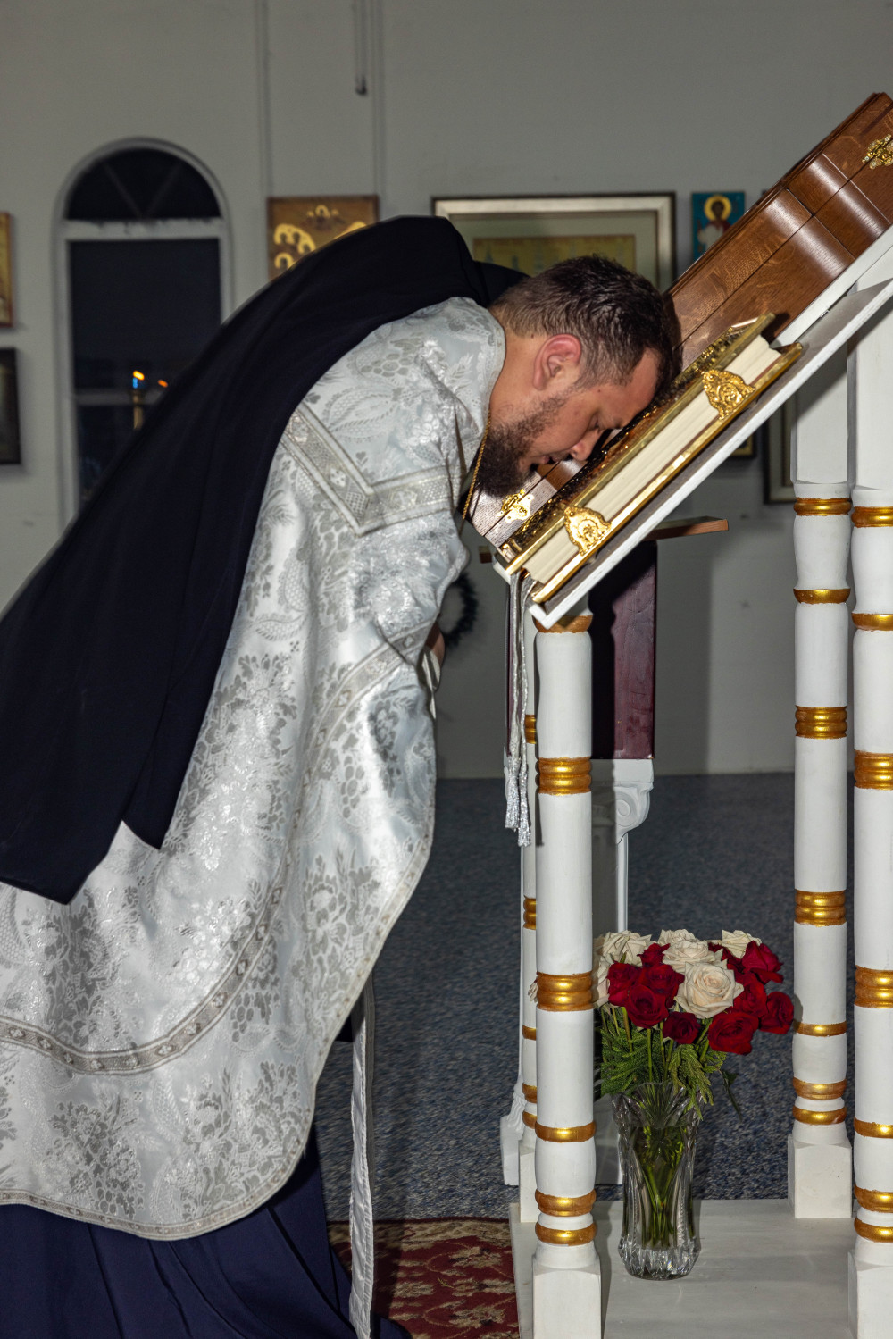 Божественную литургию совершили наместник монастыря архимандрит Стефан (Хильчук), иеродиакон Паисий (Алексеевец) и диакон Александр Хартонюк. На клиросе пел хор под управлением Валерии Суровой. Традиционно апостольское чтение было прочитано на славянском и английском языках. Евангельское чтение прочитал отец Паисий.