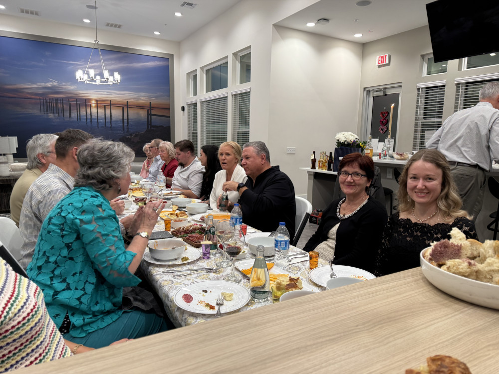 Этот обычай в чём-то напоминает добрую традицию американцев — День благодарения, который собирает вместе множество родных, друзей и близких. Братия также посетили это мероприятие, благословили стол и имели общение с гостями и некоторыми прихожанами обители, собравшимися на этот добрый и светлый праздник.