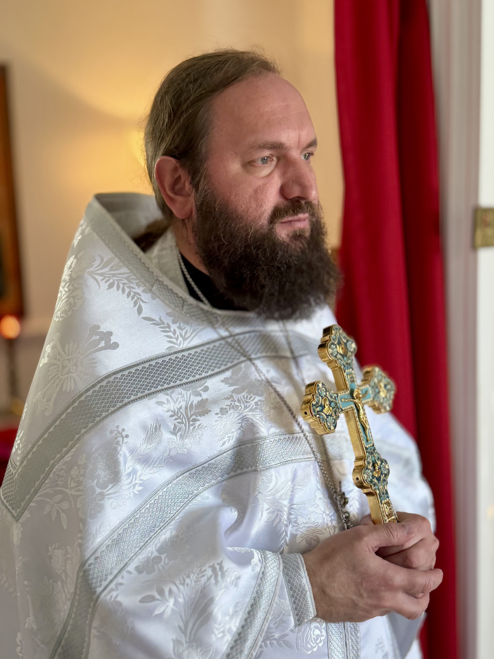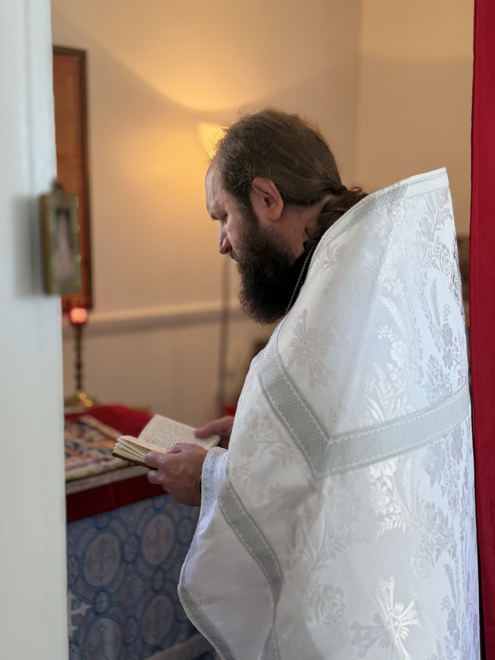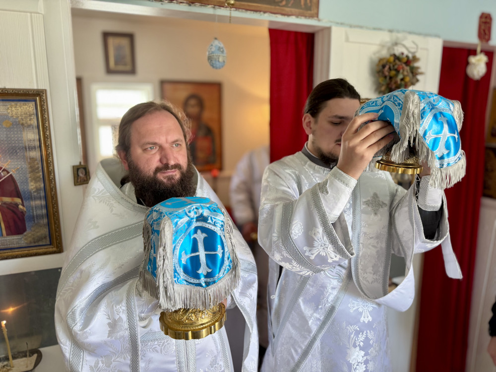 В конце литургии отец Стефан приветствовал всех и поздравил с праздником Богоявления и днём памяти святых Феофана Затворника и Анатолия Одесского. Также священник поблагодарил Людмилу Анатольевну, хранительницу часовни, за возможность послужить. По окончании литургии отец игумен освятил крещенской водой часовню, а также дом Людмилы и Анны.