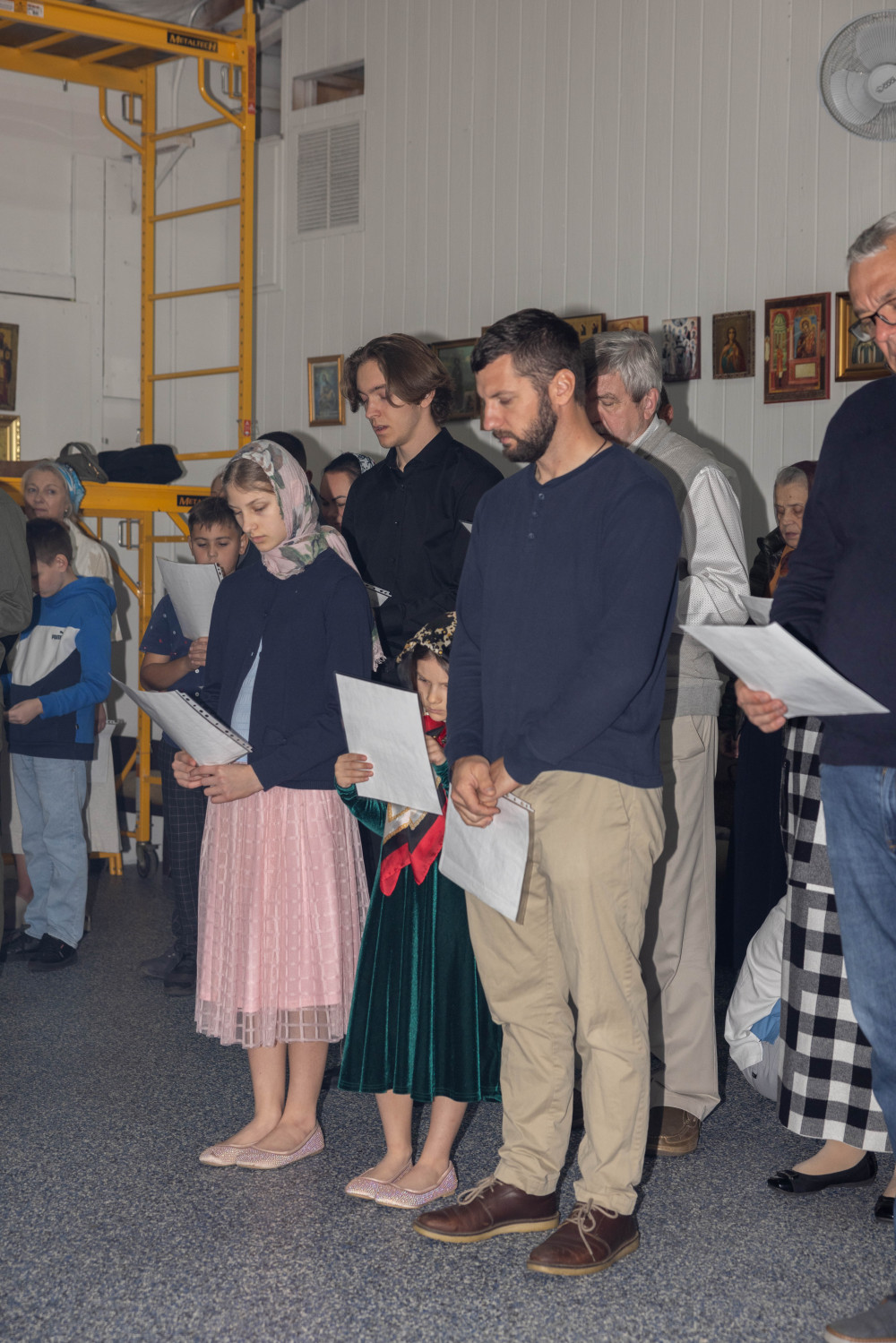 На богослужении большинство прихожан приступили к Таинствам Исповеди и Причастия.