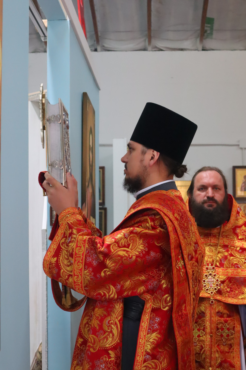 Вечернее богослужение возглавил гость из Украины — архимандрит Дамиан.