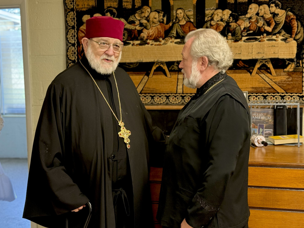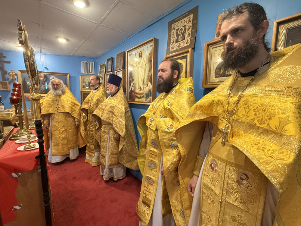 Апостольское и евангельское чтения звучали на двух языках — церковнославянском и английском. Божественную литургию украсило красивое, молитвенное и стройное пение местного хора. В конце литургии священники вышли на середину храма, где пропели величание святителям и прочитали молитву.
