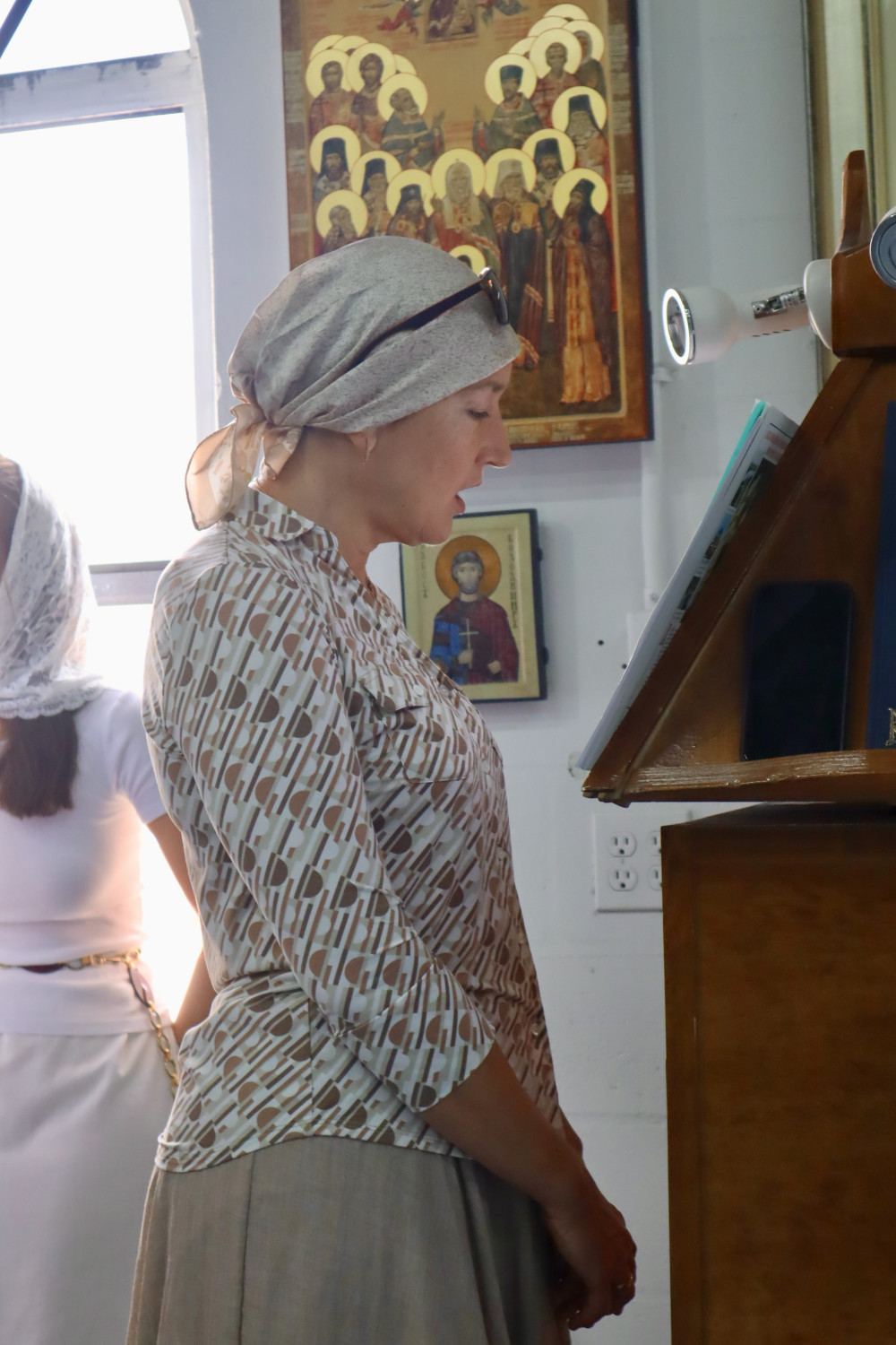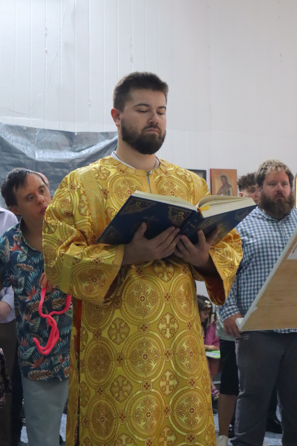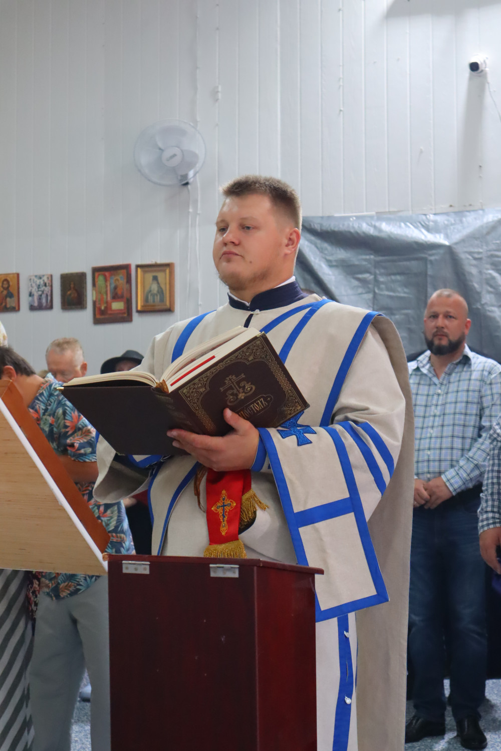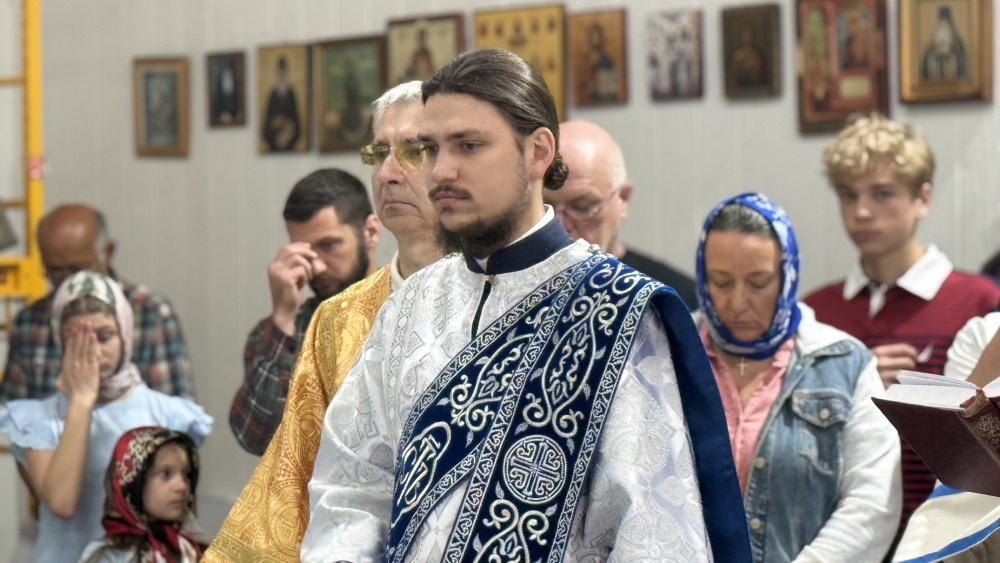 В воскресенье, после акафиста Почаевской иконе Божией Матери, была совершена Божественная литургия. Апостольское чтение было прочитано на двух языках — церковнославянском и английском.