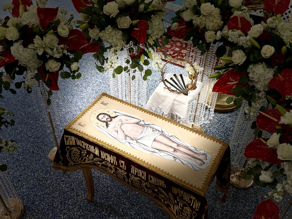 В тишине Великой пятницы верующие с благоговением предстают у гроба Господа, созерцая тайну Его Крестной жертвы и ожидая светлого торжества Воскресения.