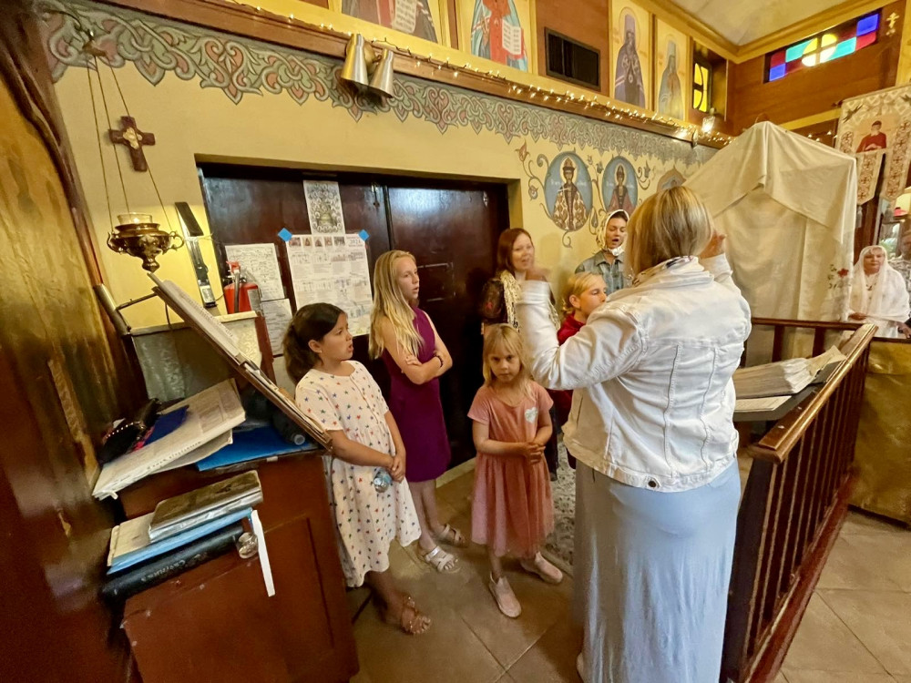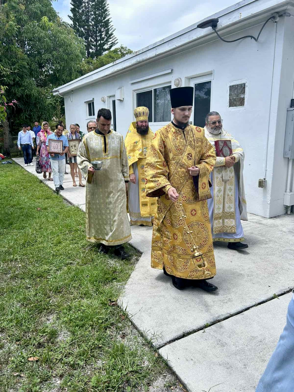 Нужно заметить, что храм святого князя Владимира один из первых славянских храмов на Флоридском континенте. Церковь построена в 1947 году труппой выступавших лилипутов, которые после революции 1917 года остались в Америке. Литургию в этот день возглавил архимандрит Стефан, ему сослужили иерей Димитриос, иерей Михаил Михайленко а также наш монастырский клирик иеродиакон Паисий. На Литургии также молился настоятель храма протоиерей Даниил Маккензи.