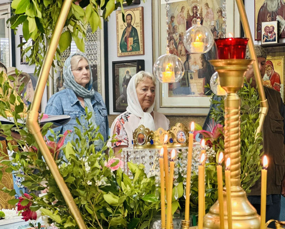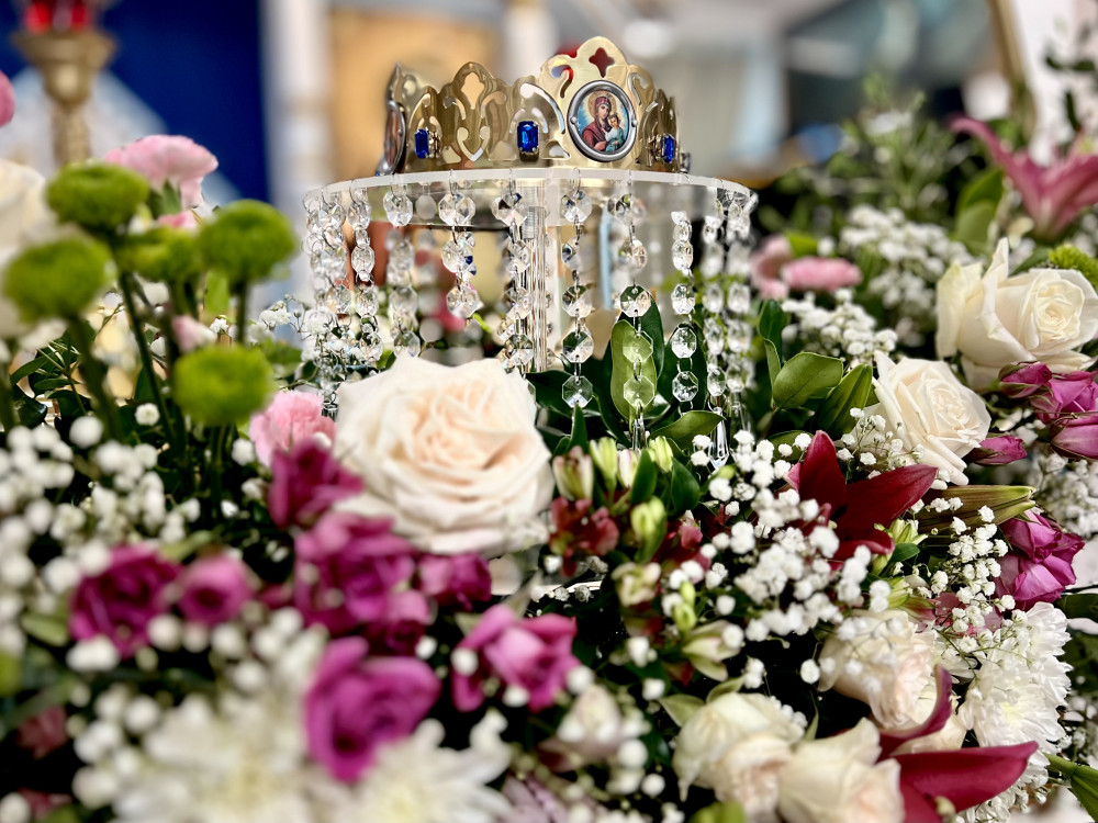 Накануне праздника братией монастыря и прихожанками, в том числе матушкой Меланой и Ириной Левитской, под руководством отца Аркадия был украшен храм и плащаница Божией Матери. Плащаница Богородицы — это особое изображение Пресвятой Богородицы, почившей на смертном одре. Обычно она пишется на ткани, но иногда изображается и на иконе.